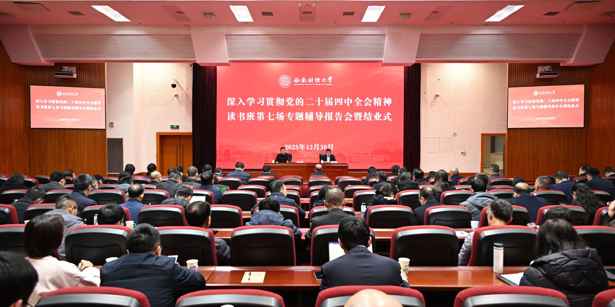 12月30日,学校在腾骧楼137会议室举行深入学习贯彻党的二十届四中全会精神主题读书班第七场专题辅导报告会暨结业式。学校领导班子成员...