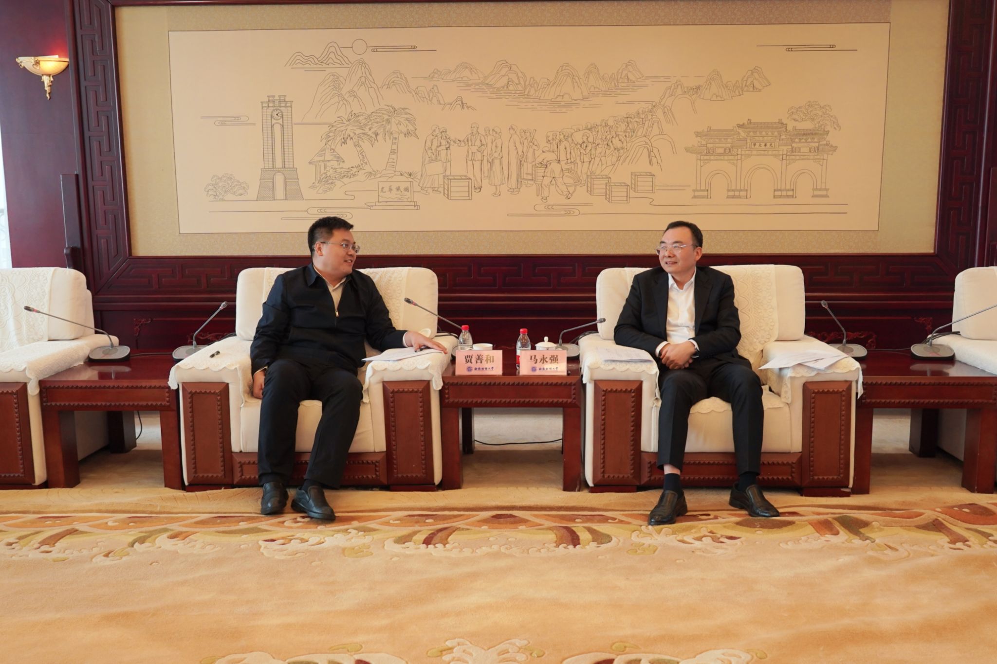 贾善和对学校的热情接待表示感谢,深情回顾了在西财的学习经历。他介绍了新疆生产建设兵团第十二师基本情况,强调当前国家正深入推进新时代西部大开发和共建“一带一路”,新疆作为我国向西开放桥头堡,战略地位日益凸显。希望此次协议签订能推动双方产学研用深度融合、加速科技成果转化,共同在十二师构筑金融服务与人才创新高地。