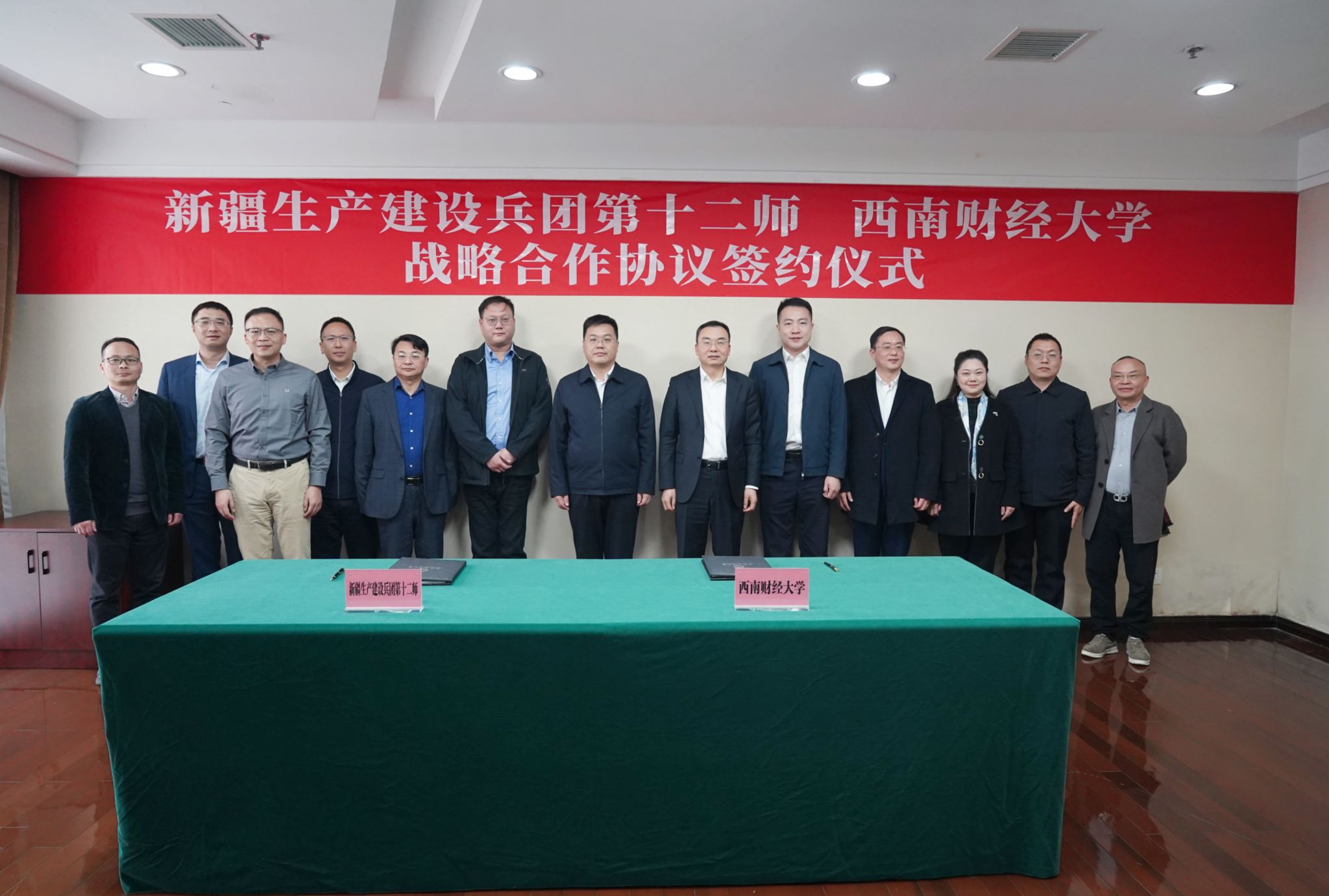 学生职业规划与就业指导中心、人事处(党委教师工作部)、科研处、国内合作与发展处、校友工作办公室、工商管理学院、国际商学院和新疆生产建设兵团第十二师自贸办、财政局等部门负责人以及成都金融服务业商会、西南财经大学新疆校友会会长参加签约仪式。