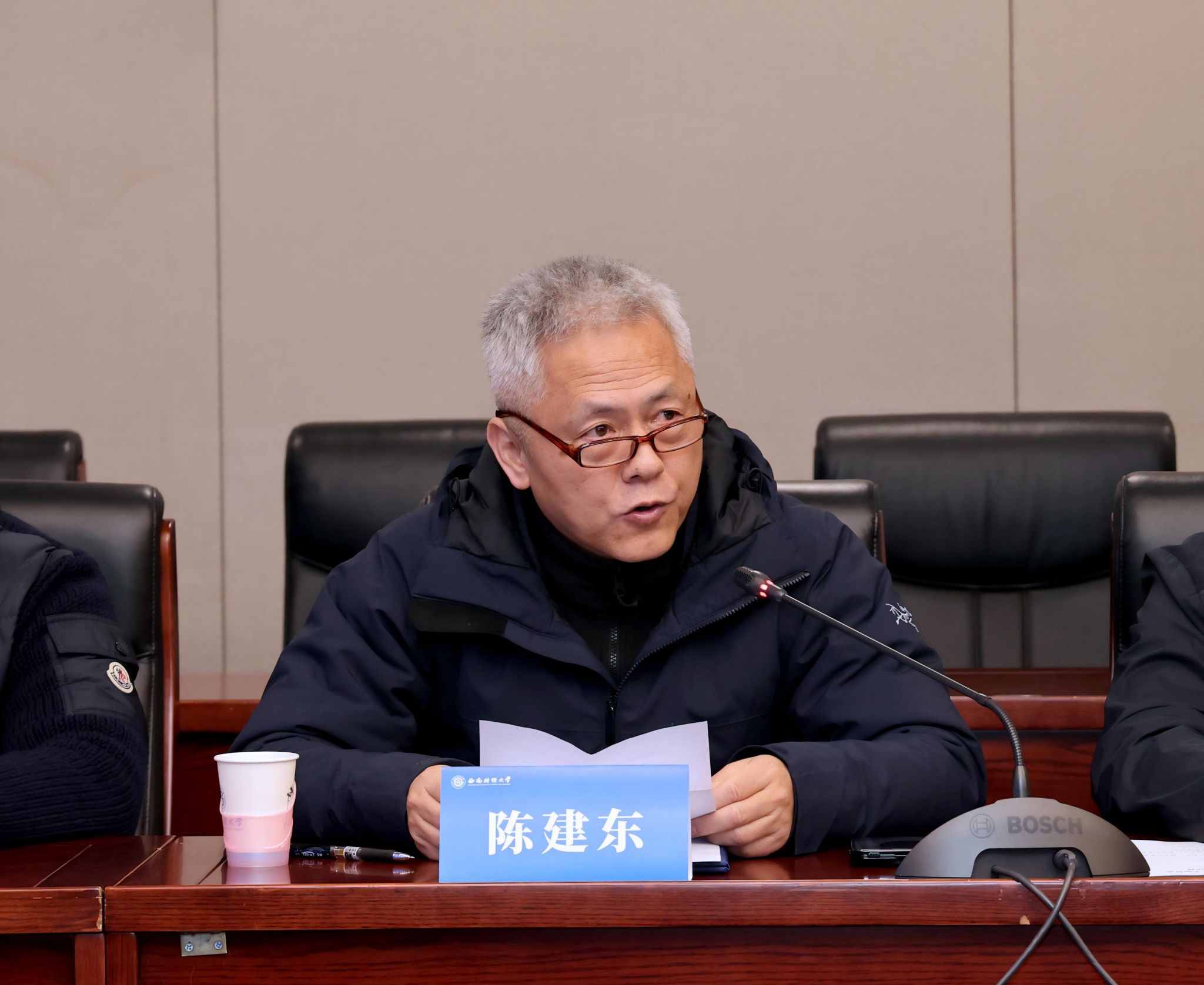 新当选的学术委员会主任委员陈建东教授代表新一届委员会发言。他对学校党委、行政的信任以及各位委员的支持表示感谢,回顾了上一届学术委员会在学科建设、科研论证、学术评价等方面取得的积极成效。他表示,新一届学术委员会将坚持学术本位、恪守学术规范,认真履行职责,在学术引领、质量提升和学术生态建设等方面持续发力,推动学校学术事业高质量发展。