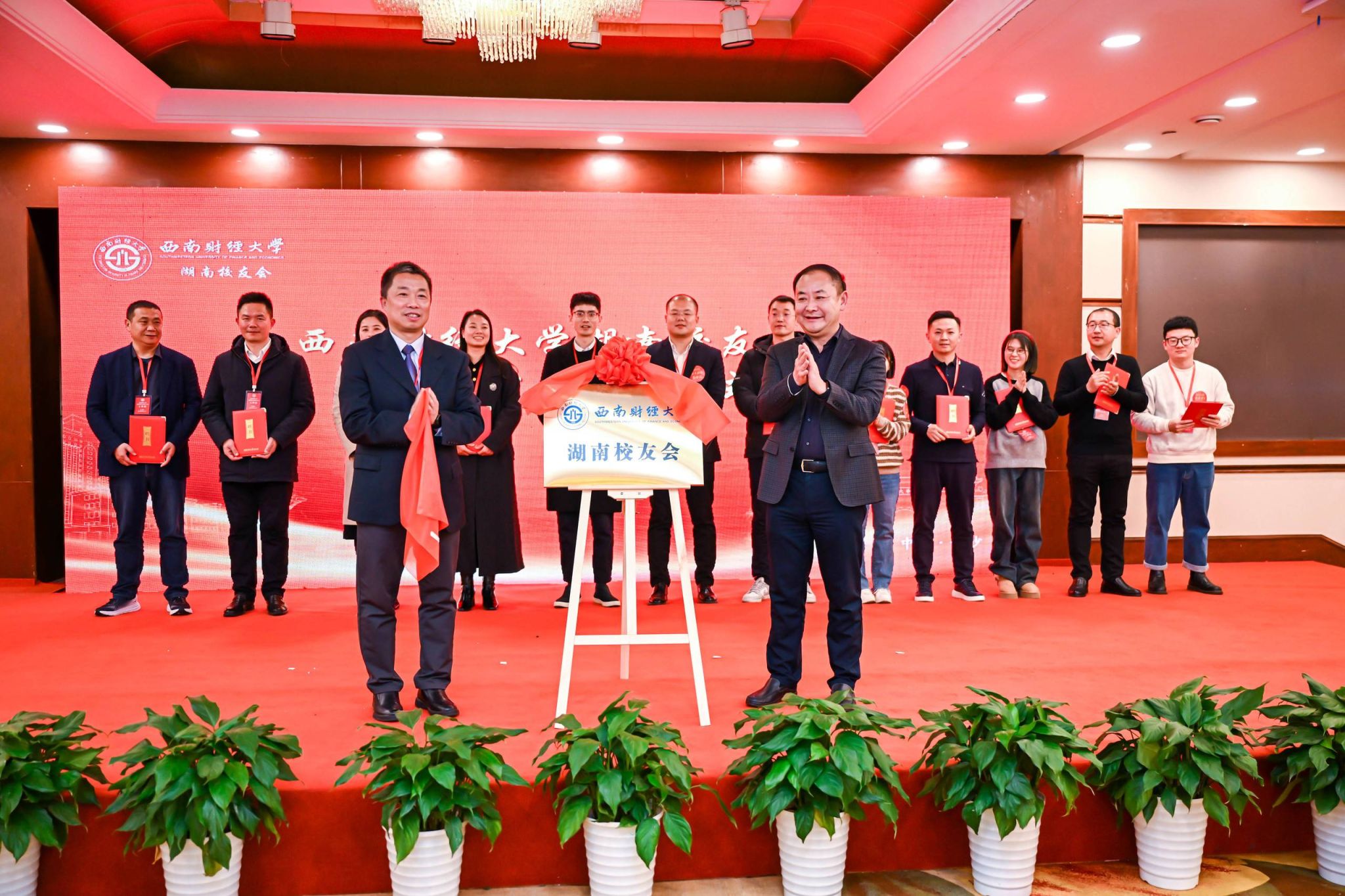 会上宣读了《关于成立西南财经大学湖南校友会的批复》和湖南校友会第一届理事会成员名单,举行了湖南校友会揭牌和授旗仪式,并为湖南校友会第一届理事会成员颁发聘书。