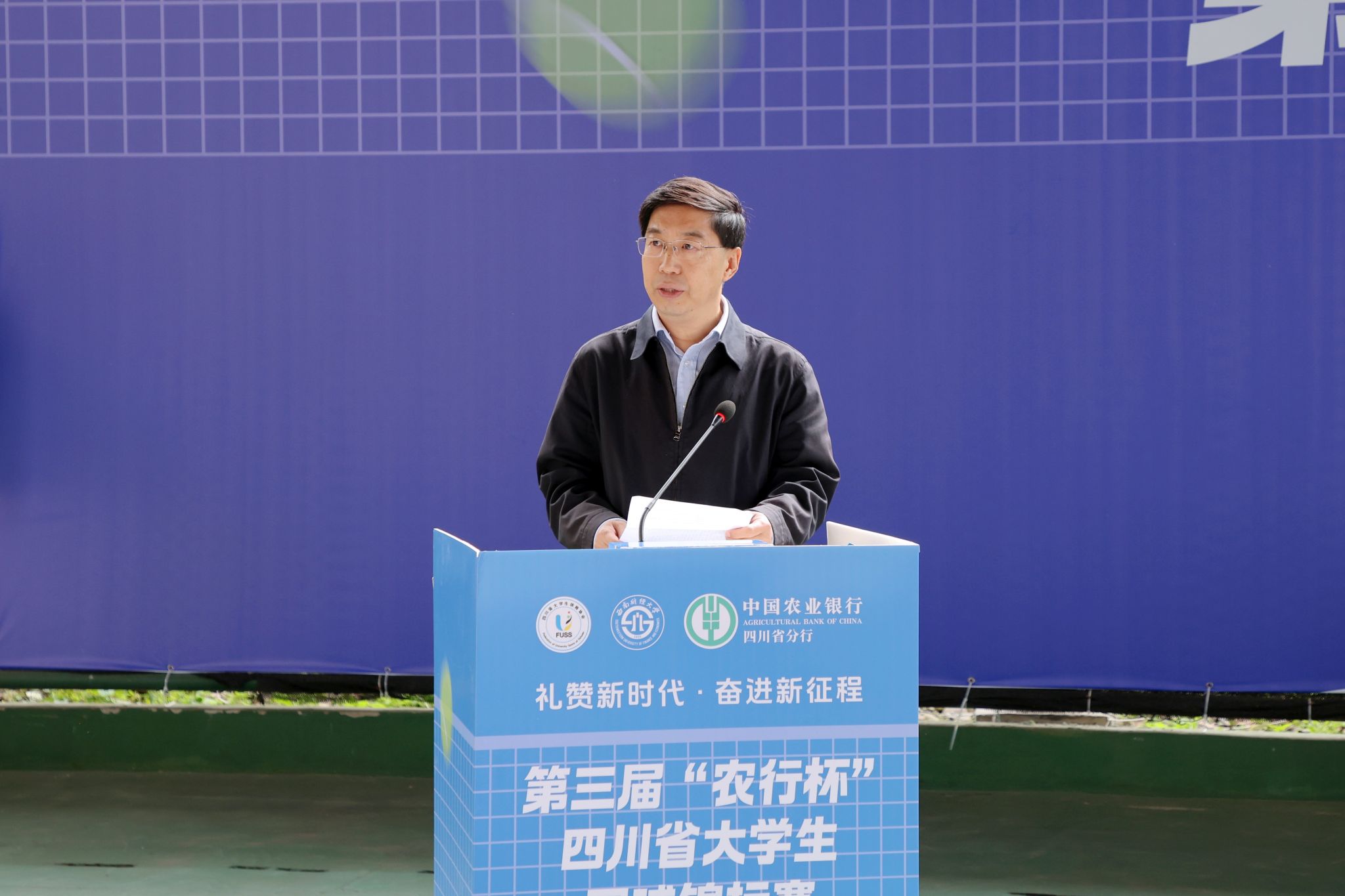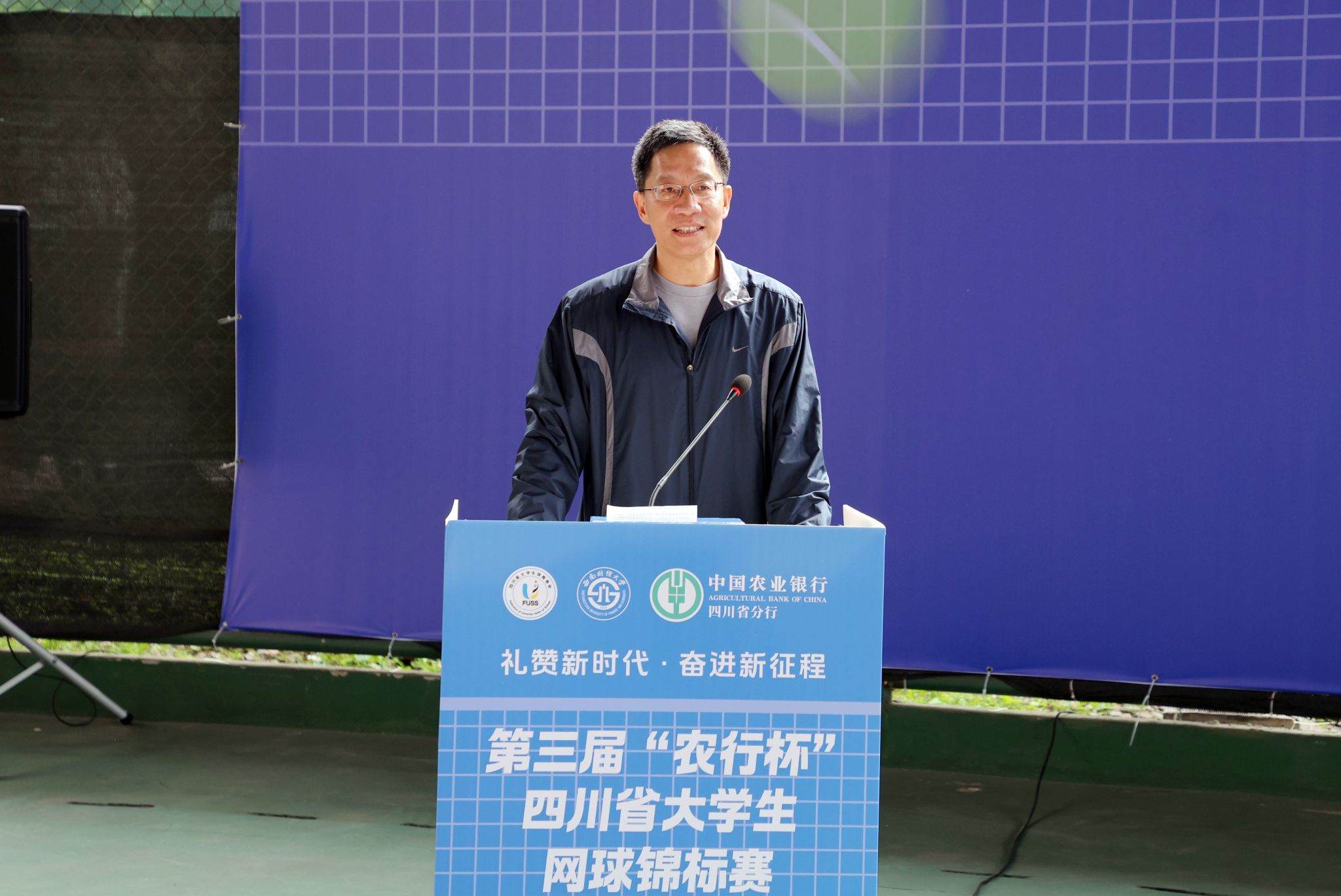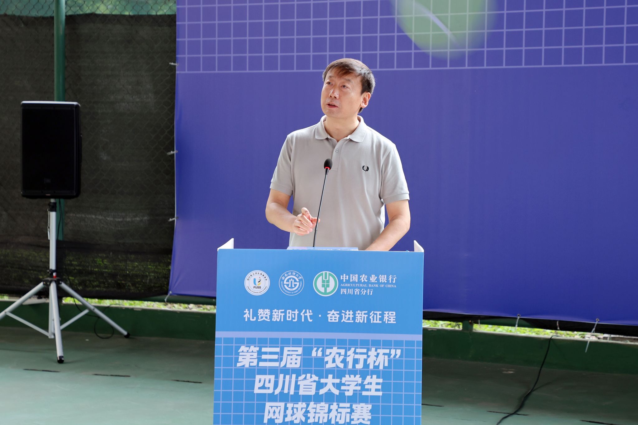 赵建军表示,“体育承载着国家强盛、民族振兴的梦想。体育强则中国强,国运兴则体育兴”。西南财经大学始终坚持把体育作为促进学生全面发展的重要举措,近年来,承办了第31届世界大学生夏季运动会排球项目比赛、中国大学生篮球联赛四川省基层赛、四川省“贡嘎杯”青少年体育联赛、“农行杯”四川省大学生网球锦标赛等赛事,学校足球、篮球、网球等项目在国内有关重要比赛中取得了优异成绩。本次锦标赛既是四川高校网球竞技水平的集中汇演,也是竞技体育事业发展成果的集中展示,更是践行体育强国战略的生动实践,必将有助于促进竞技体育与群众体育、学校体育与全民体育有机融合。他希望全体运动员释放激情、燃烧斗志、享受比赛、收获友谊,全体裁判员和工作人员恪尽职守、公正裁决、真诚服务,让大家在健康、活力和创造中度过一段美好而有意义的时光。