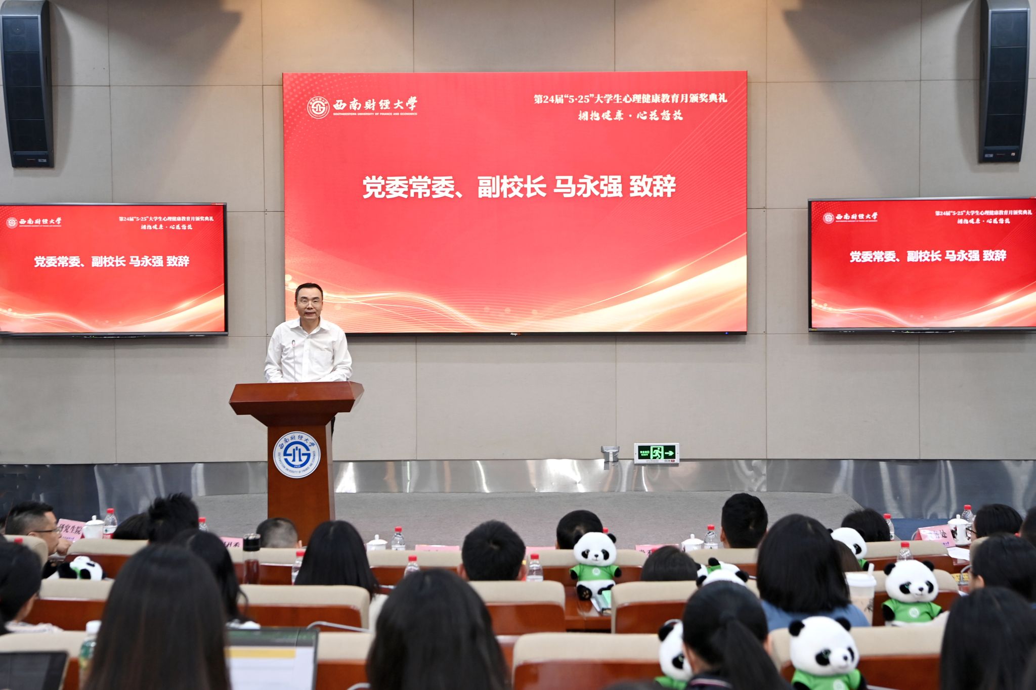 马永强致辞,代表学校向受到表彰的先进集体和优秀个人表示祝贺。他指出,学校始终站在为党育人、为国育才战略全局,高度重视心理健康教育工作,将其贯穿立德树人全过程、各环节。高质量做好心理健康教育工作,要深研青年学生心理健康教育规律,关爱守护心灵成长,数智赋能精准施策,切实提升心理育人精准度、实效性。