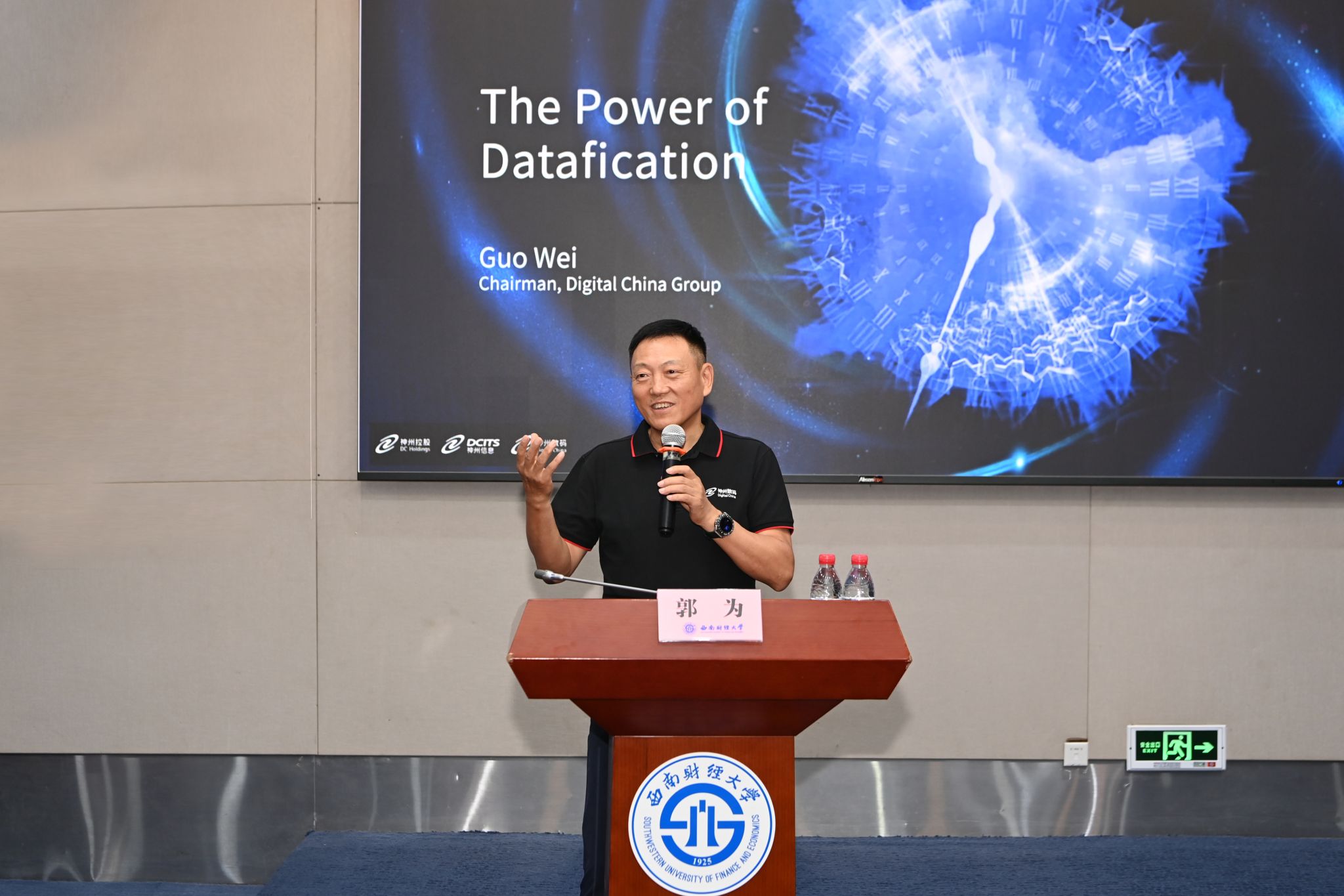 桂富强在主持讲座时对郭为应邀来我校作专题讲座表示热烈欢迎和诚挚感谢,希望本次讲座能够为数字化转型背景下学科交叉融合提供新思路,为数字化浪潮时代下经管学科发展提供新启发,为国家数字化建设贡献西财力量。