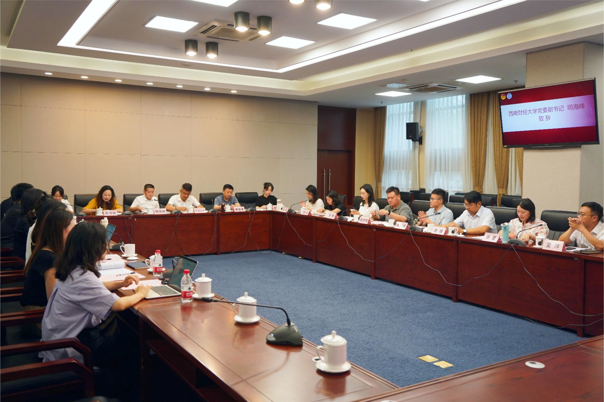 为深入学习贯彻习近平总书记关于思政课建设的重要讲话和重要指示精神,聚焦高校共青团组织为党育人主责主业,坚定不移用习近平新时代中国特色社会主义思想武装团员和青年,在新时代学校思政课建设中充分发挥主力军作用,提高共青团工作影响力和凝聚力,6月20日,由西南财经大学承办的“四川省高校共青团工作沙龙”第二期活动在柳林校区顺利举办,沙龙围绕“高校共青团工作在新时代学校思政课建设中充分发挥主力军作用”主题开展。团省委副书记华旦扎西、学校党委副书记明海峰出席活动。来自四川大学、西南交通大学等9所学校团委相关负责同志参加沙龙。活动由团省委学校部部长乔沛姝主持。