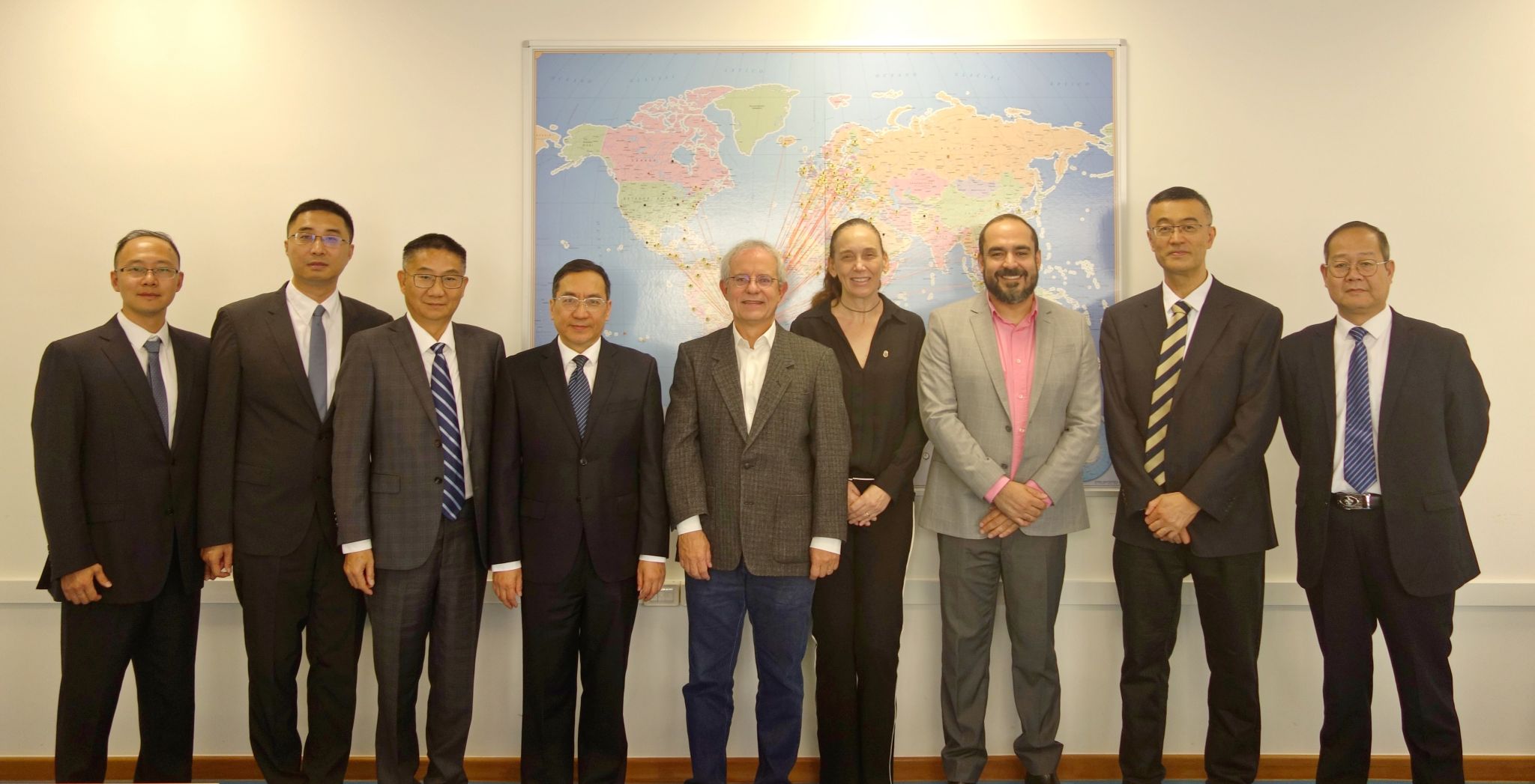 在巴西,代表团一行与巴西圣保罗大学副校长Sergio Persival Baroncini Proença、国际处负责人等举行会谈。史代敏介绍了学校的历史沿革与学科特色,他表示,中国和巴西在经贸、教育领域交流合作日益密切,希望两校增进了解,积极推进师生交流互访、科研合作等领域友好合作。Sergio Persival Baroncini Proença对代表团到访表示热烈欢迎并对学校取得的成绩表示祝贺,期待以此次会谈为契机开启两校师生、学术交流与合作的新篇章。会上,双方就双学位项目、合办学术会议、共建研究中心等项目进行了深入探讨。