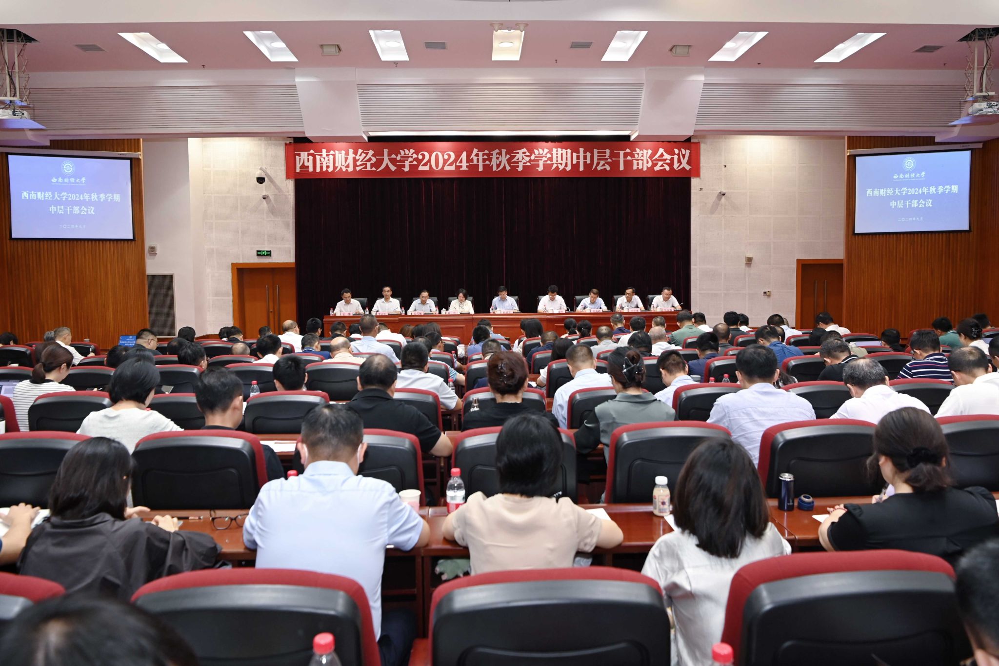 赵建军全面总结了学校春季学期工作,深刻分析了秋季学期工作面临的形势任务。他指出,春季学期以来,学校党委坚持以习近平新时代中国特色社会主义思想为指导,全面贯彻落实党的二十大精神和二十届三中全会精神,认真落实教育部党组和四川省委部署要求,深入落实学校十三届五次党代会精神和学校年度工作要点,扎实开展党纪学习教育,稳步推进第二轮“双一流”建设,认真筹备百年校庆系列活动,着力提升党建与思政工作质量,着力构建高质量人才培养体系,着力提升学术创新与社会服务能力,着力建设一流财经人才高地,着力优化学生教育管理服务,着力提升内部治理效能,着力推进文化与民生事业,全校上下以“闯”的精神、“创”的劲头和实战作风,有力有序推进各项工作,取得了靓丽成绩。他强调,要立足国际变局、国内大局、教育全局和学校实际,分析把握秋季学期面临的形势任务、谋划审视学校工作,坚持把立德树人作为核心课题持续抓好,坚决贯彻落实党中央和教育部党组关于高等教育发展的部署要求,注重系统集成,注重突出重点,注重改革实效,加快建设财经特色鲜明的世界一流大学。