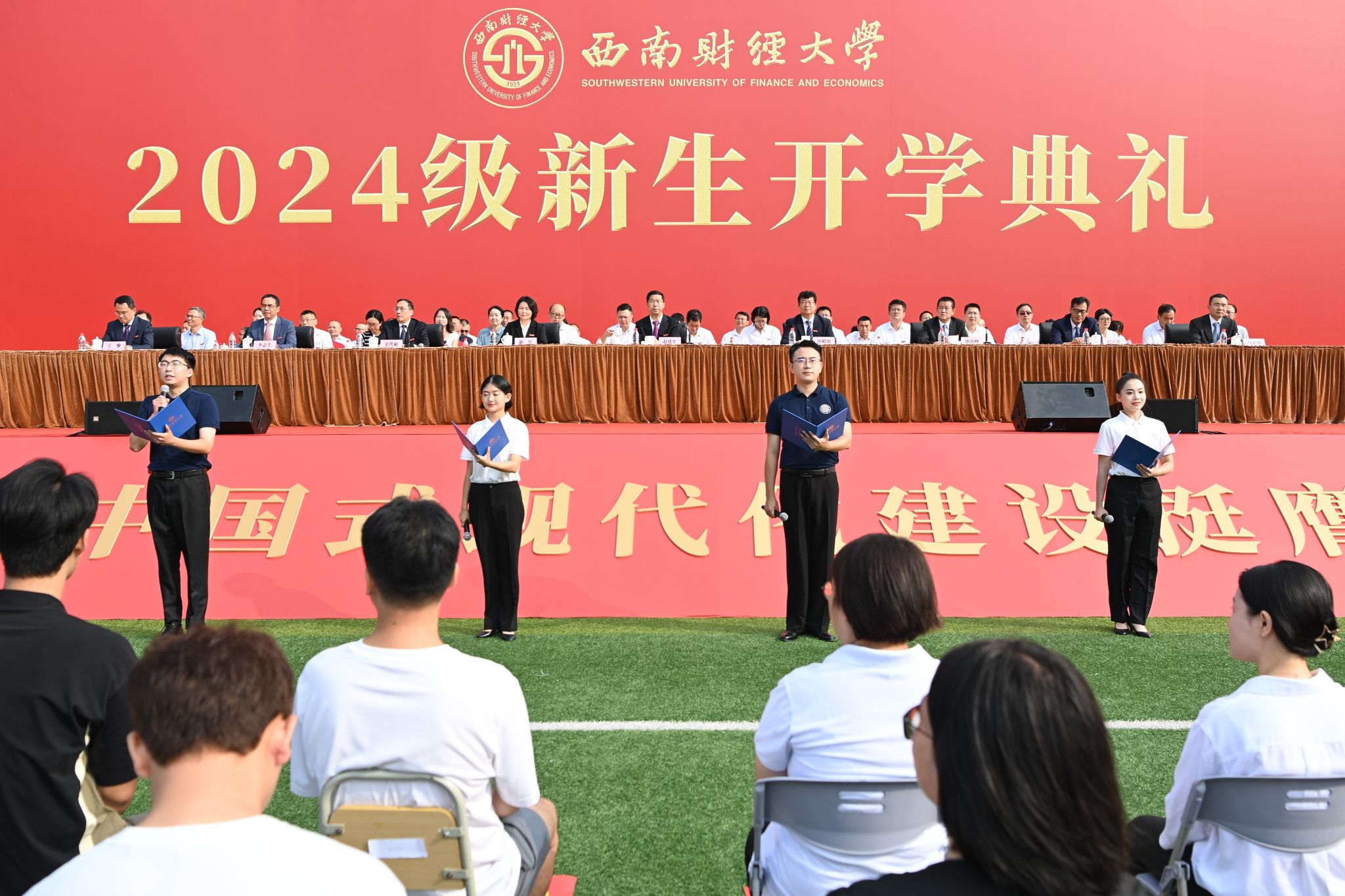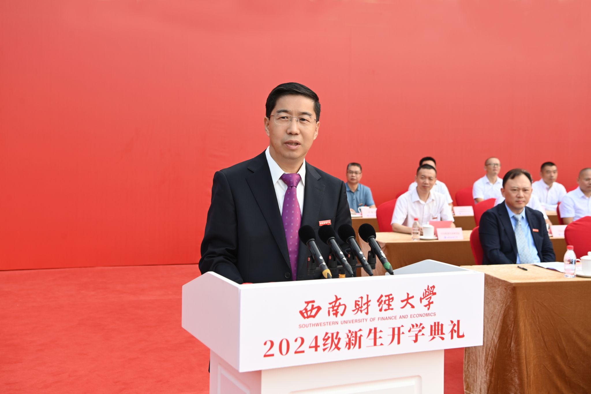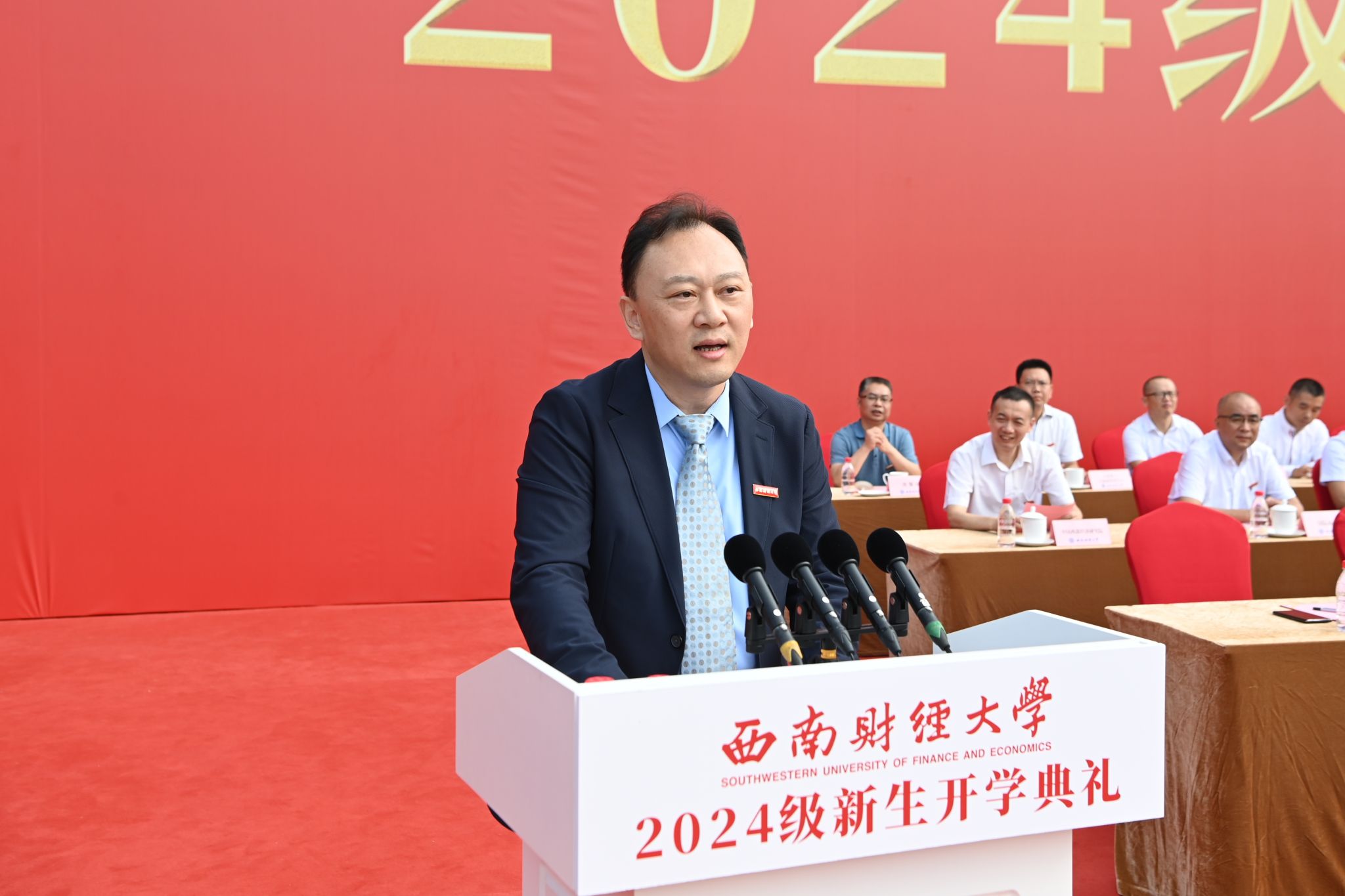 赵建军温情寄语2024级新生。探索吧,西财青年!在浩瀚书海中探索解答“为何读书、读什么书、怎样读书”的求知三问,以读书筑牢挺膺担当的基石,以敏锐脑力向未知前进,用书香滋养经世济民的情怀,让青春浸润于书香之中,绽放在山河之间。奔跑吧,西财青年!在运动锻炼中练就健康体魄、塑造阳光心态,锤炼干事、担事、成事的“铁肩膀”,涵育豁达、旷达、通达的“大胸怀”,以健康昂扬的风貌向远方前进,投身时代发展滚滚洪流、强国有我伟大实践之中。攀登吧,西财青年!在课堂内外磨砺顺境中有耐力、逆境中有弹力的坚韧心力,向高处前进,让所知所学扎根在祖国最需要的地方,将百年西财“孜孜以求”的精神力量篆刻在为人为学为事的始终,篆刻进主动服务中国式现代化的青春篇章。赵建军期待2024级全体新同学,以卓越的见识、健康的身心、坚毅的品格,把前进写在向深探索、向前奔跑、向上攀登的西财岁月中,成为追光的人、成为奔腾不息的西财力量,在强国建设、民族复兴伟业中展现青春作为、彰显青春风采、贡献青春力量!