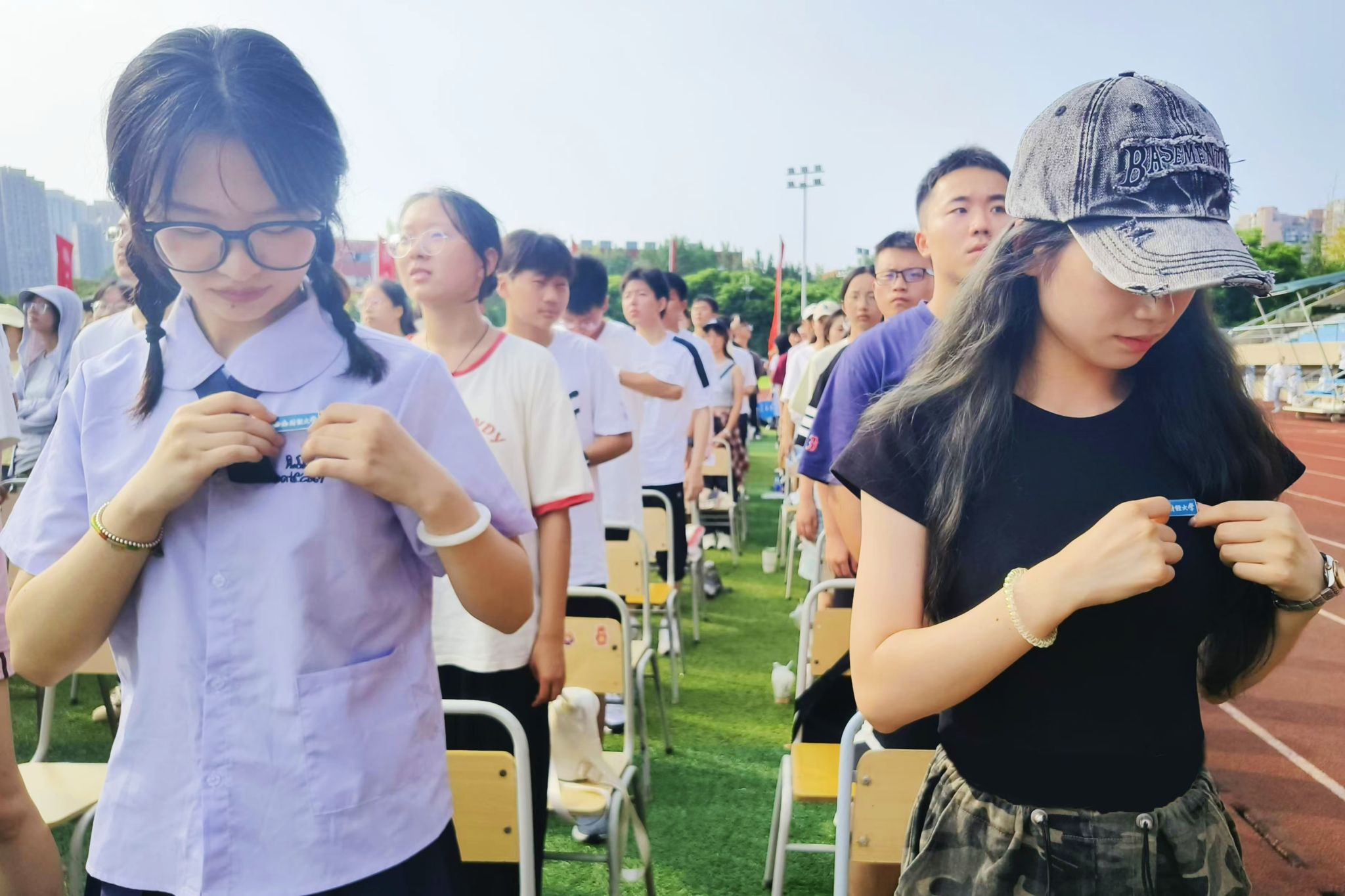 仪式中,学校领导为新生代表佩戴学校名牌,全体新生现场集体佩戴学校名牌并庄严宣誓。胸前闪耀的“西南财经大学”,是青春之焰、理想之光,激励着每一位新西财人朝着成长之路、逐梦之旅前行。
