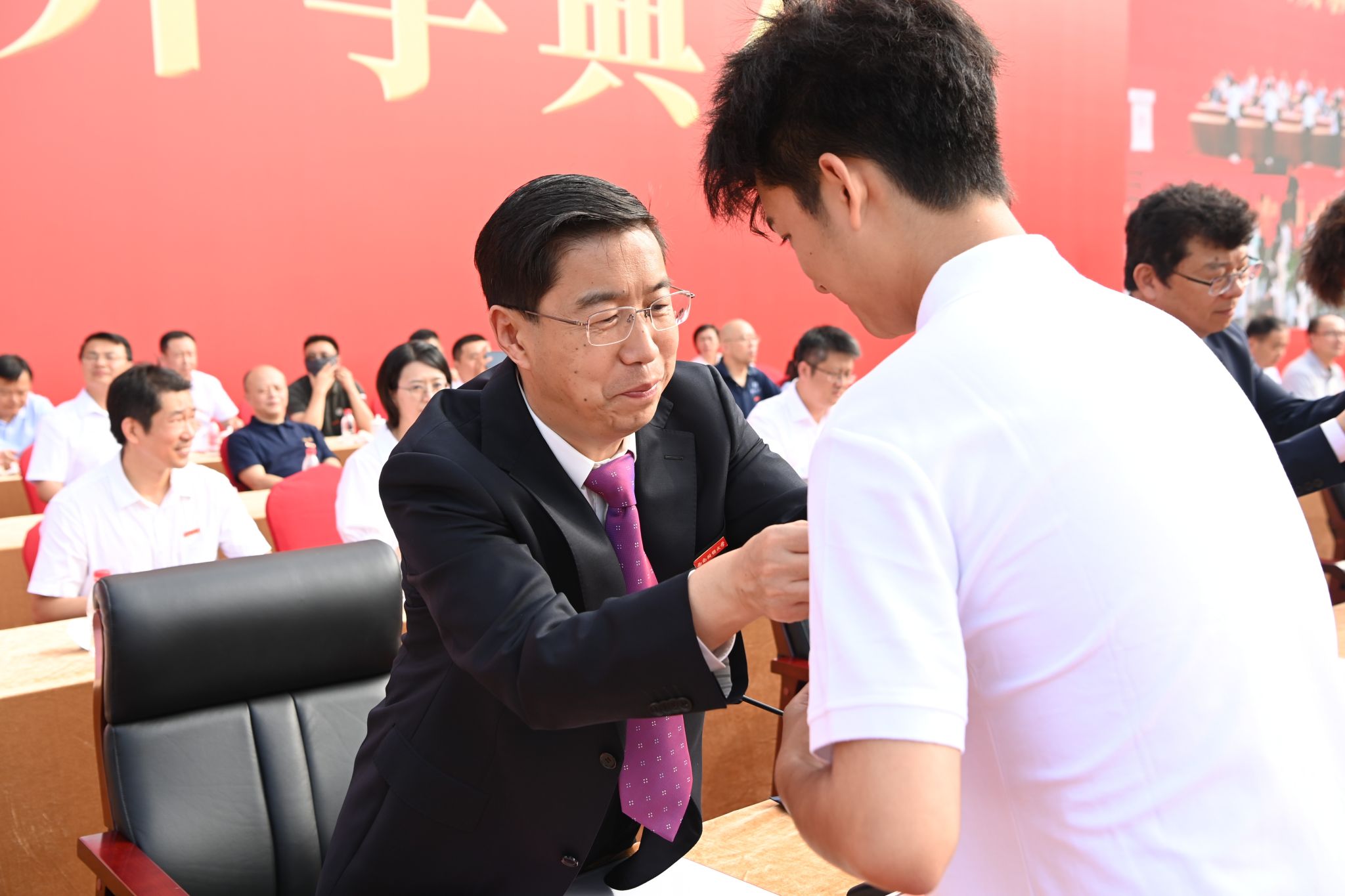 学校党委书记赵建军,党委副书记、纪委书记孙殿明,党委副书记谢红、明海峰,党委常委、副校长史代敏、桂富强、李志生、马永强、王擎,职能(教辅)部门和新生培养单位负责人,教师代表、校友代表、家长代表及全体新生一同见证这一庄严神圣的时刻。史代敏主持典礼。