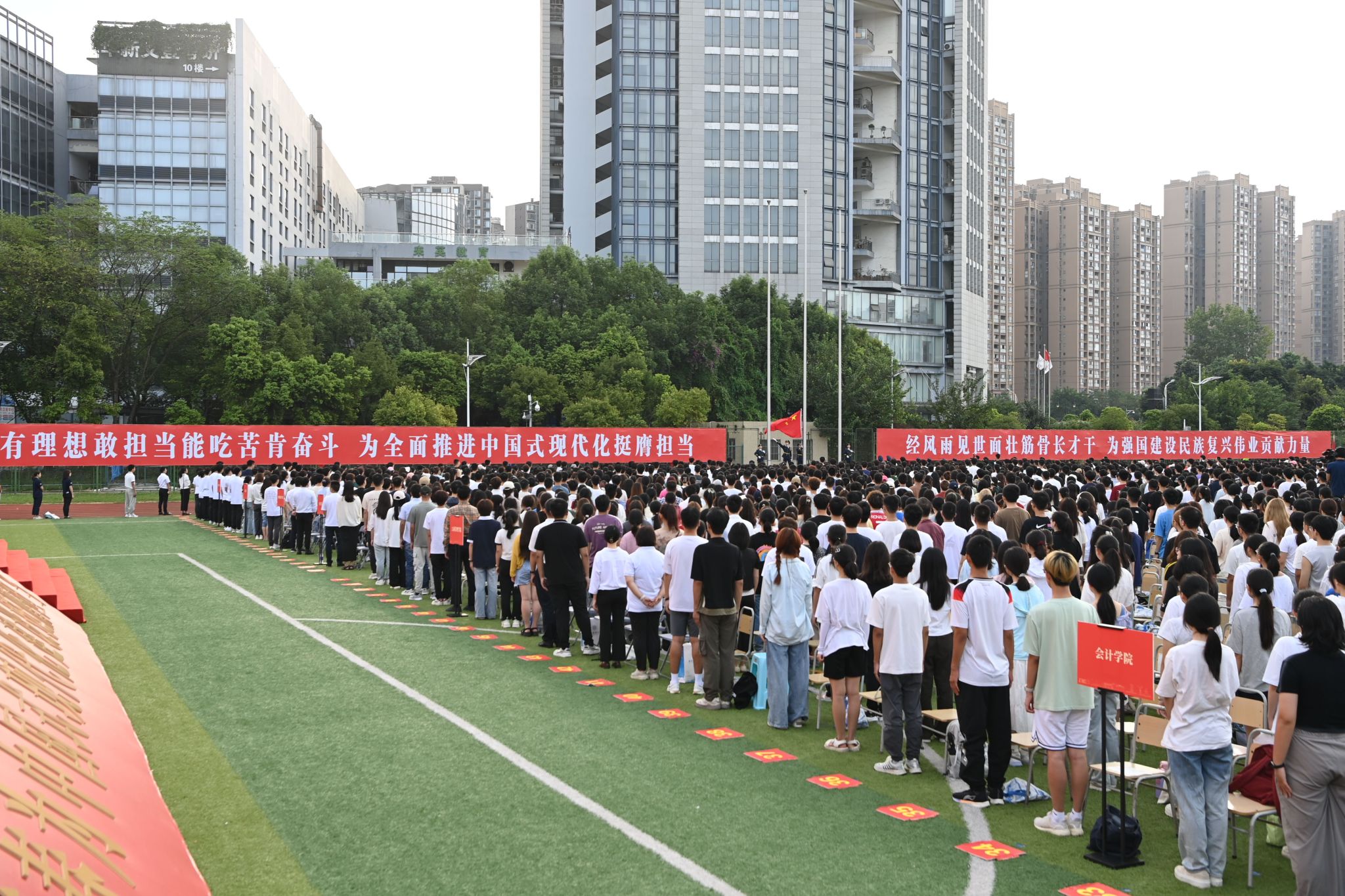 蓉城锦绣风光正好,学子凌云共赴新章。9月7日,学校举行2024级新生开学典礼。来自祖国和世界各地的7800余名新西财人齐聚柳林校区晨曦运动场,满怀青春热忱,参加庄严仪式,聆听师长寄语,同上一堂生动思政大课。他们将从这里踏上追逐梦想、拥抱成长的崭新旅程,将在这里感悟百年历史文脉,一路踏歌而行,奔腾前进!