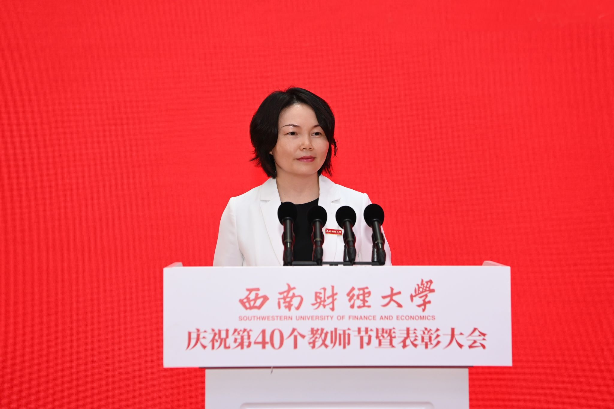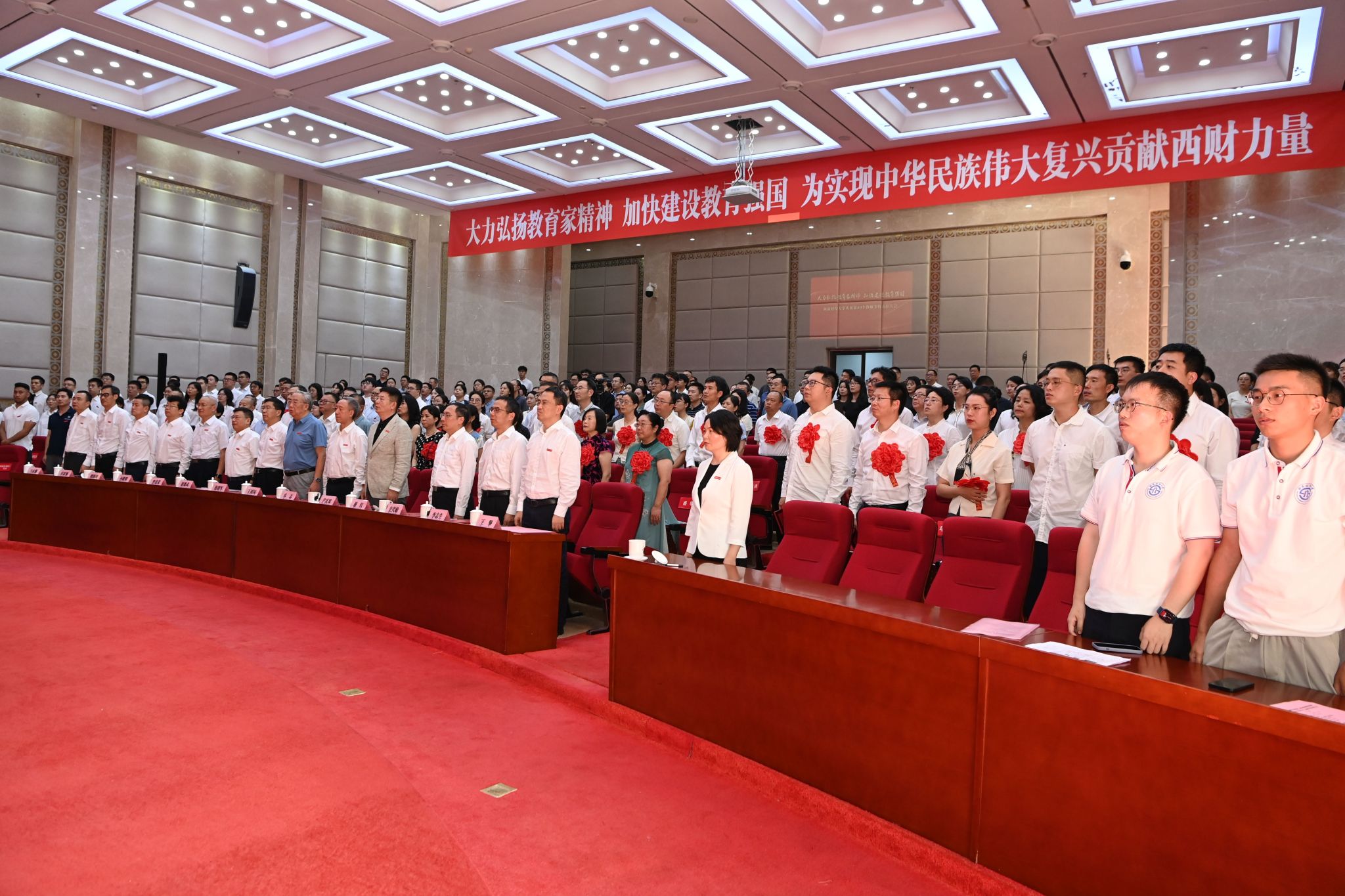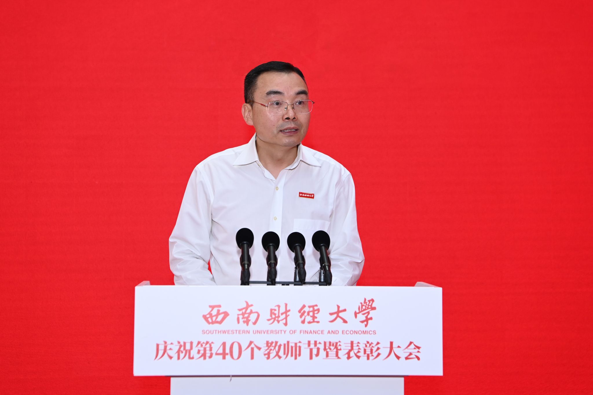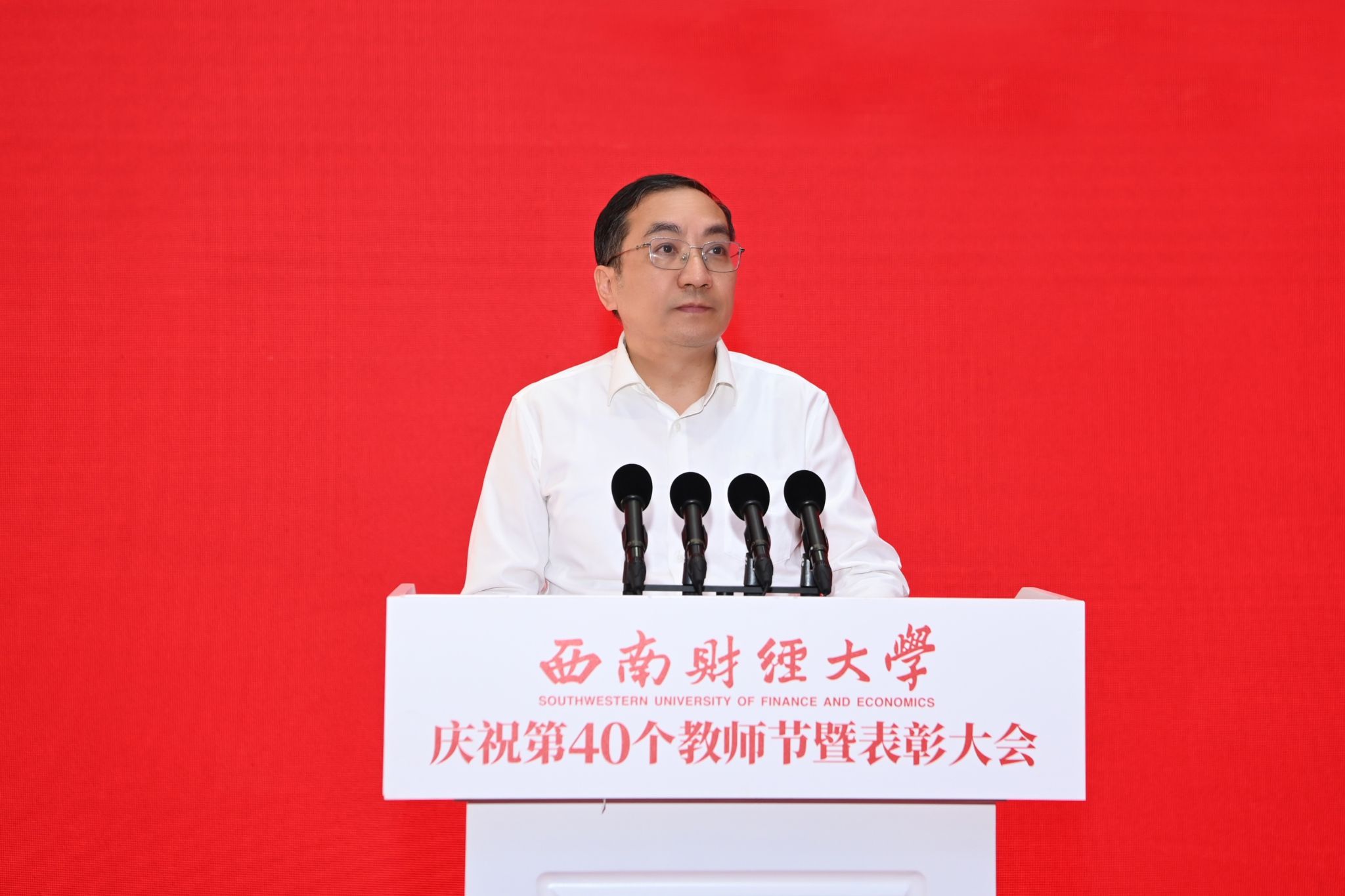 赵建军指出,长期以来,学校党委把隆重庆祝教师节作为弘扬尊师重教传统、加强教师队伍建设、增强教师职业荣誉感的重要载体,成为学校思政工作体系和名师大家文化的重要组成部分。广大西财教师牢记为党育人、为国育才使命,以赤诚之心、奉献之心、仁爱之心投身教育事业,用实际行动培养了一批批优秀人才,诠释出教育家精神的时代底色,彰显出“大国良师”的西财风采。过去一年,全体教师学思践悟“铸忠诚”、躬耕教坛“育英才”、顶天立地“治学问”、经世济民“立新功”,在思想引领、教育教学、科学研究、社会服务等领域取得丰硕成果。