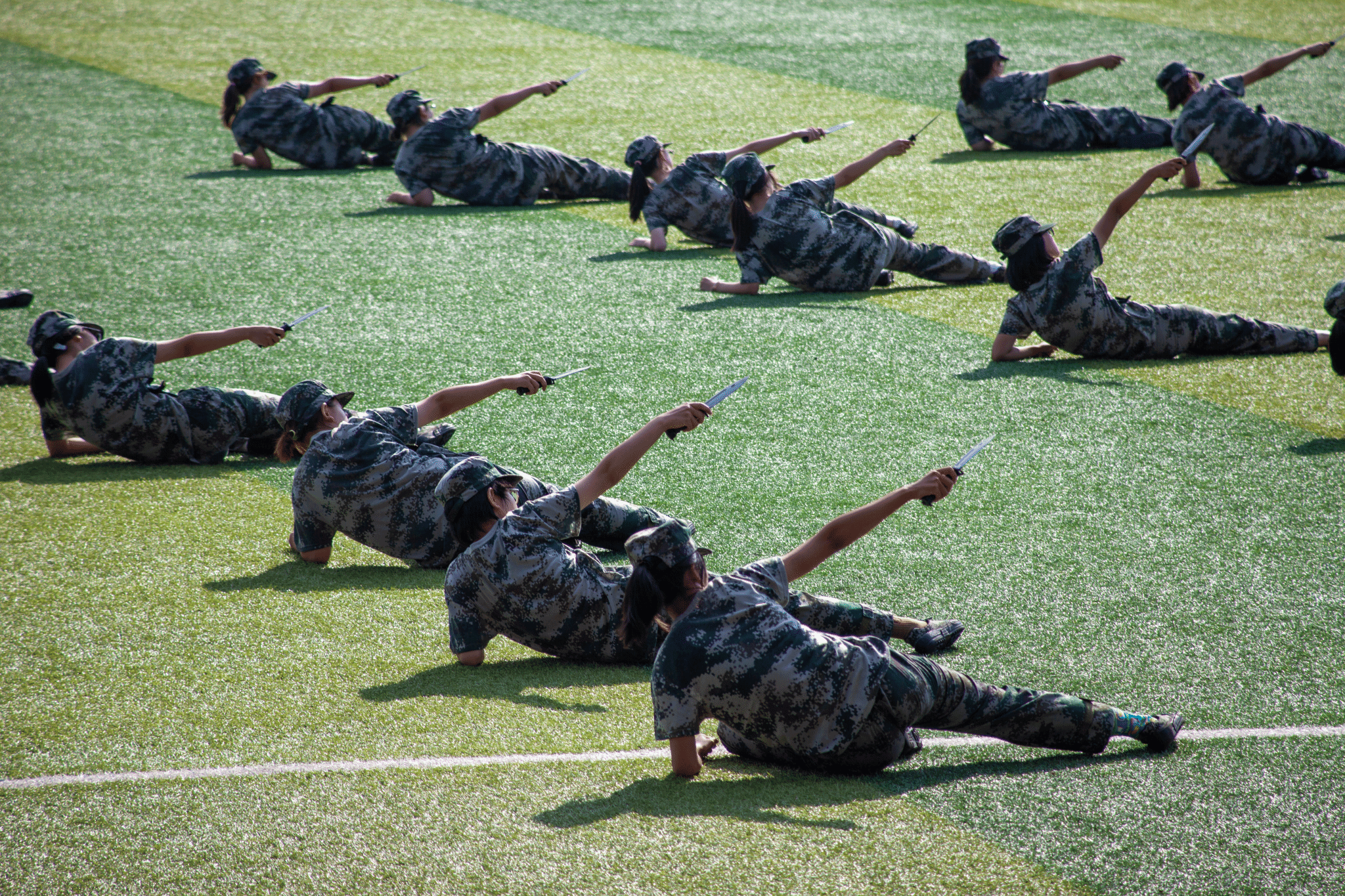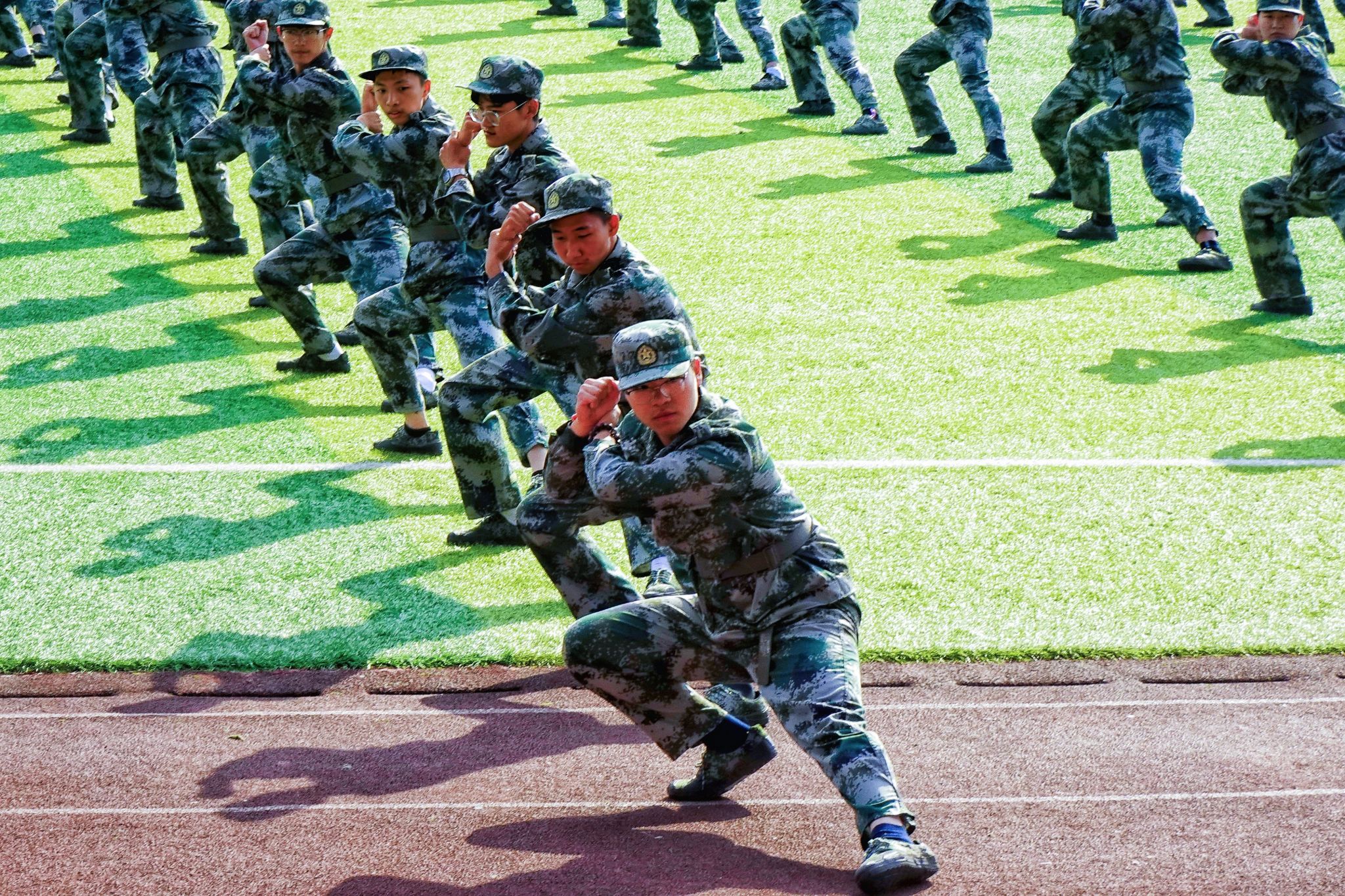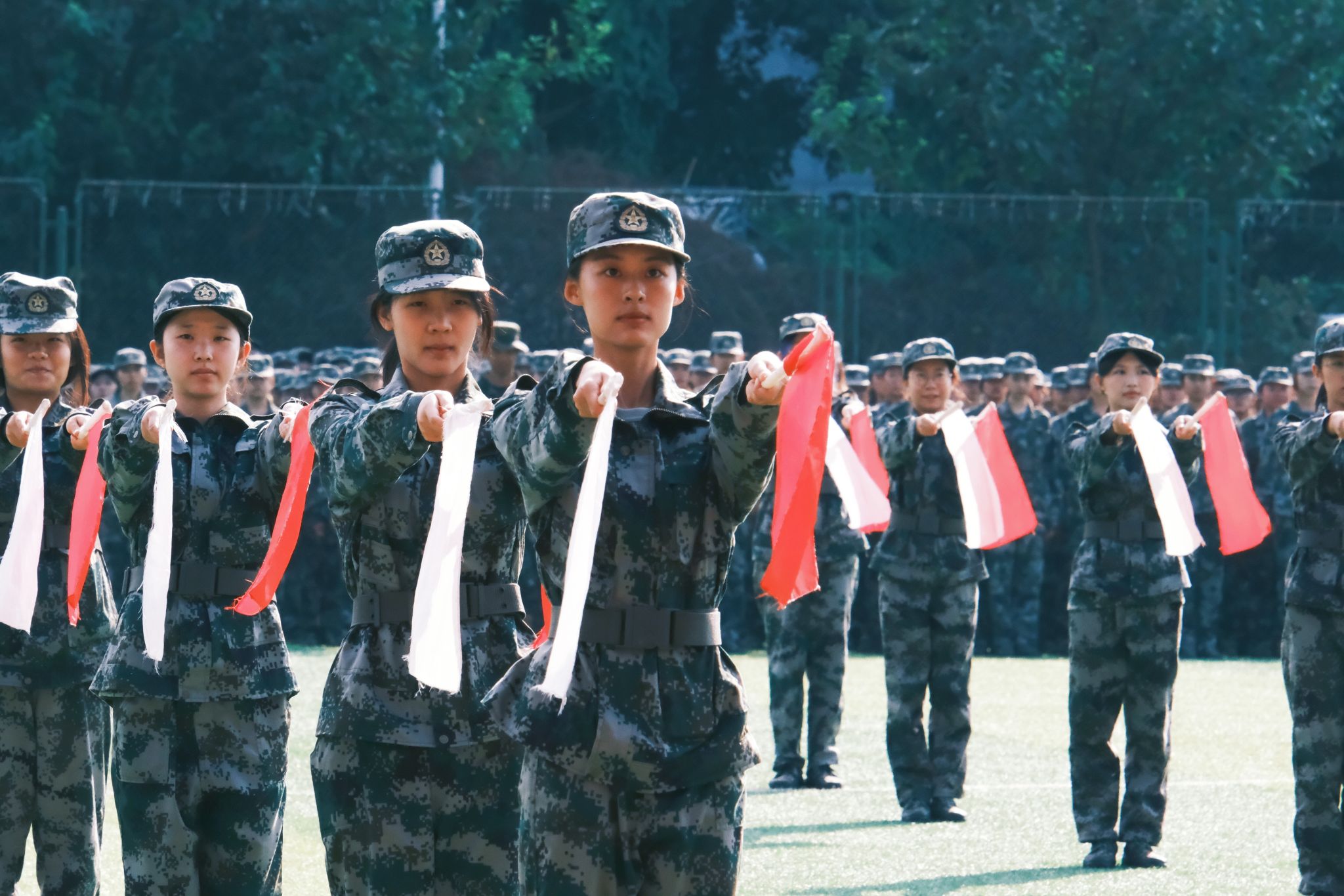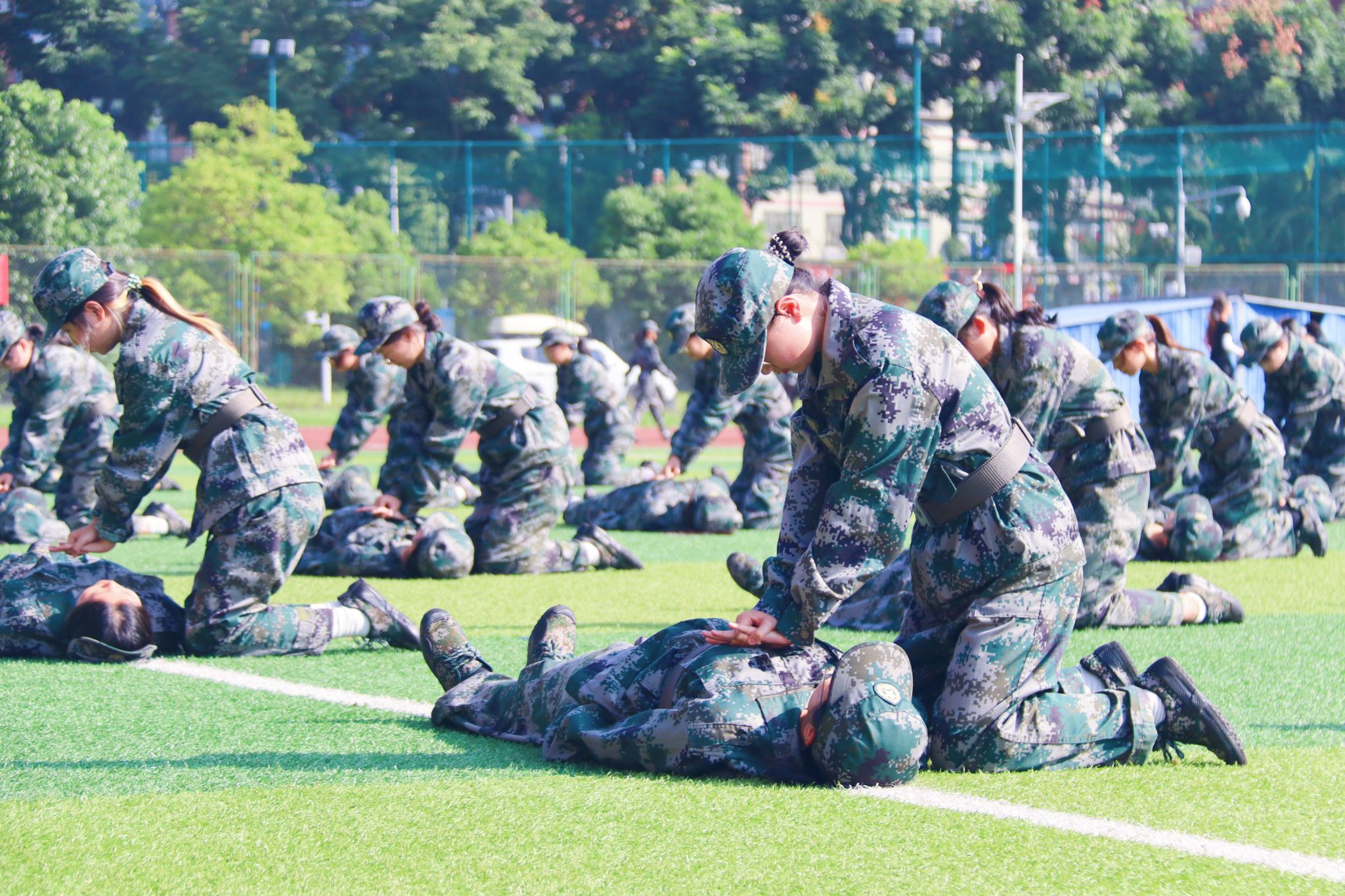 军训成果展示中,豪迈磅礴的分列式方阵,飒爽矫健的擒敌、战术方队,意气风发的旗语方队,英勇无畏的匕首、刺杀方队,沉着冷静的救护方队,展现出一幅幅生动的爱国主义教育图景,军人般的壮志气魄与同学们飞扬的青春交相辉映,充分展示了西财学子意气风发的青春活力和积极进取的精神风貌。