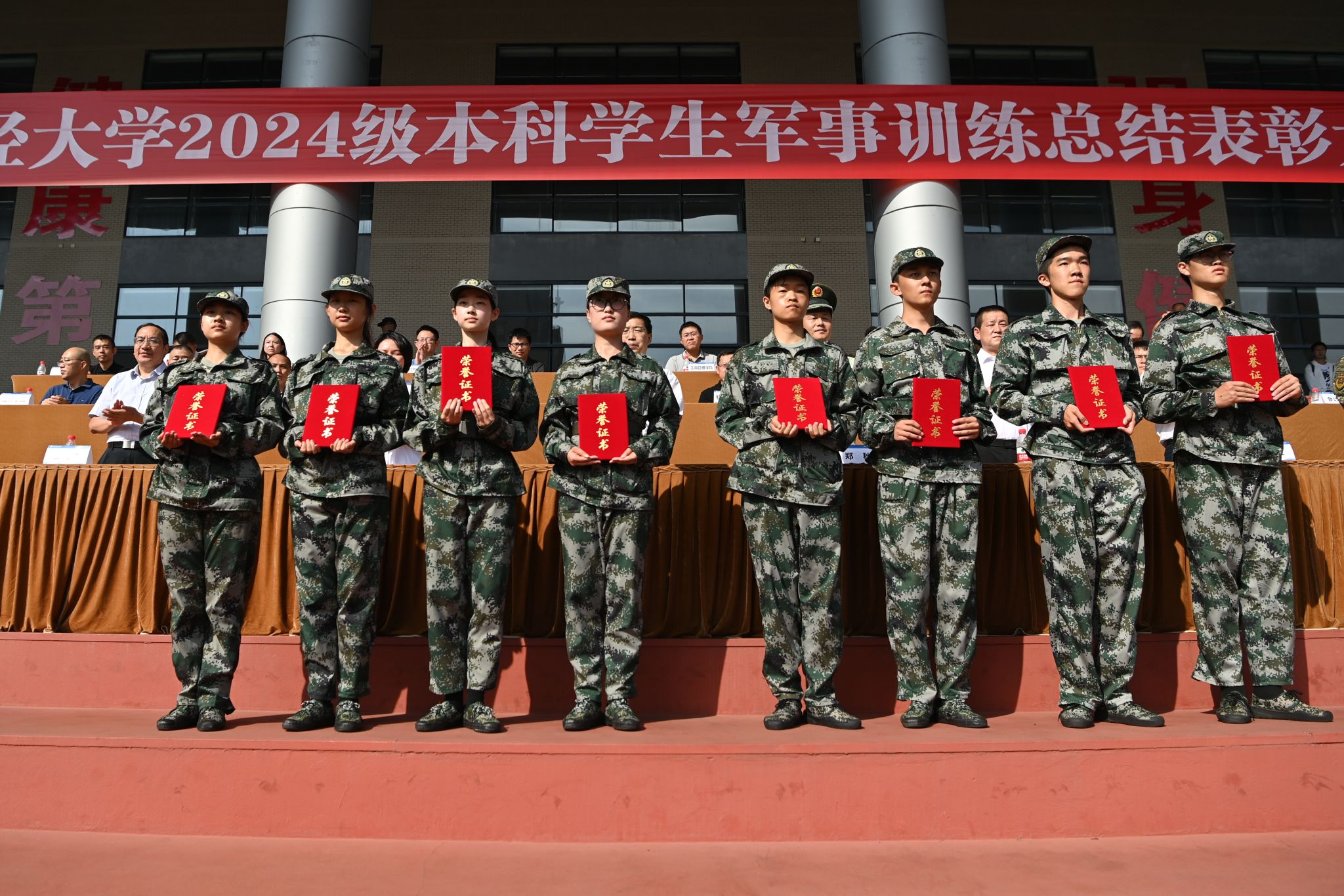 武警成都支队领导宣读了《嘉奖令》。本次军训共评选出470名“优秀学员”、15名“优秀教官”。校领导为获奖代表颁发了荣誉证书,财政税务学院夏美婧同学代表军训优秀学员发言。