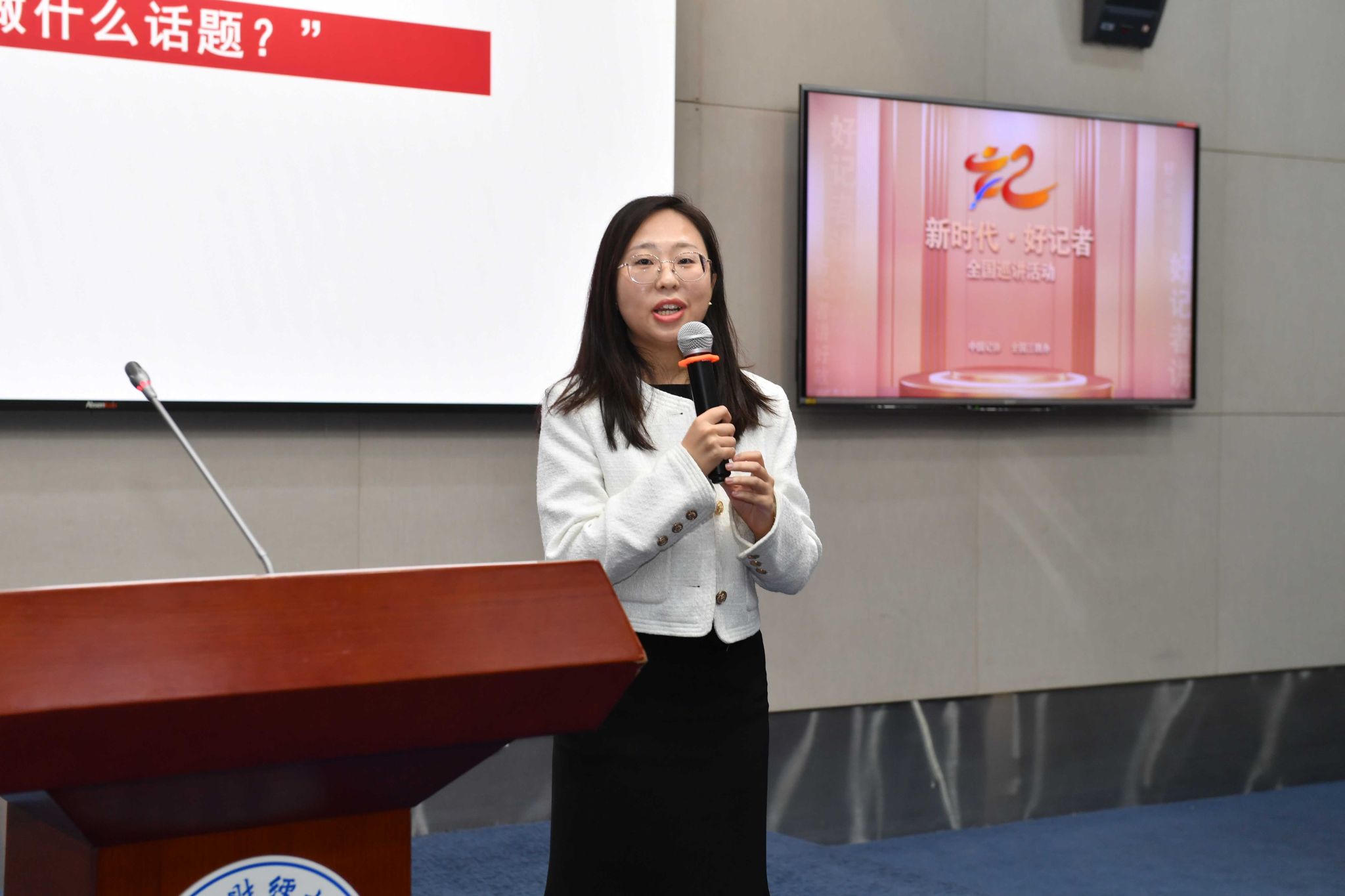 11月11日,由中国记协、全国三教办组织开展的“新时代·好记者”全国巡讲西南财经大学站活动在学校柳林校区弘远楼101会议室举行。学校党委副书记明海峰、党委宣传部部长陈宗权出席活动,各学院(研究院)宣传工作负责人、师生代表、学生工作团队代表等聆听巡讲。