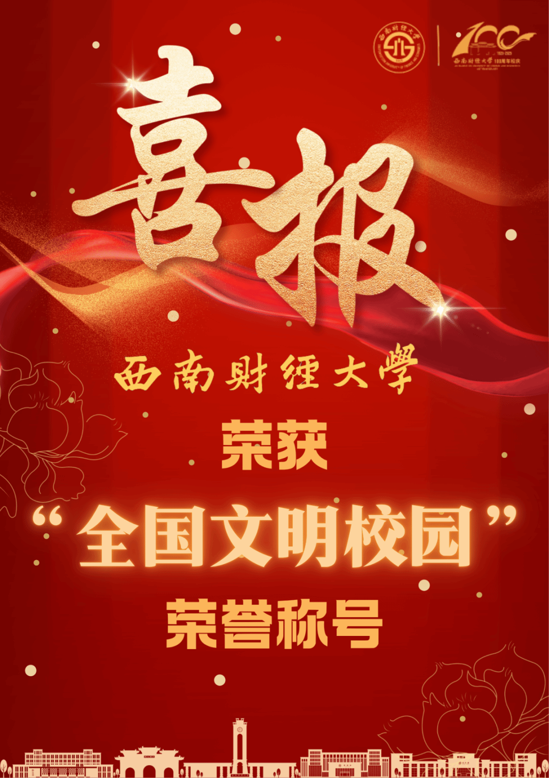 面向新百年,学校将以荣获“全国文明校园”称号为有利契机,不断把文明校园建设深度融入学校党建和事业发展之中,持续推动文明校园建设巩固提高,更好履行精神文明建设“走在前列”时代之责,为推动文化繁荣、建设文化强国、建设中华民族现代文明贡献西财力量!