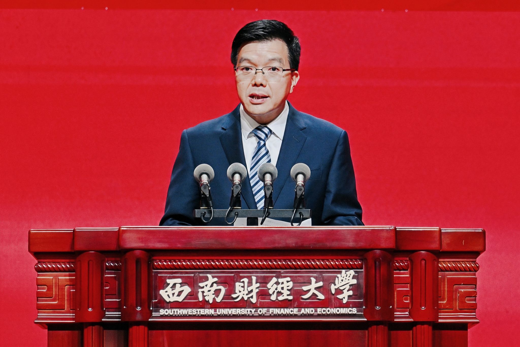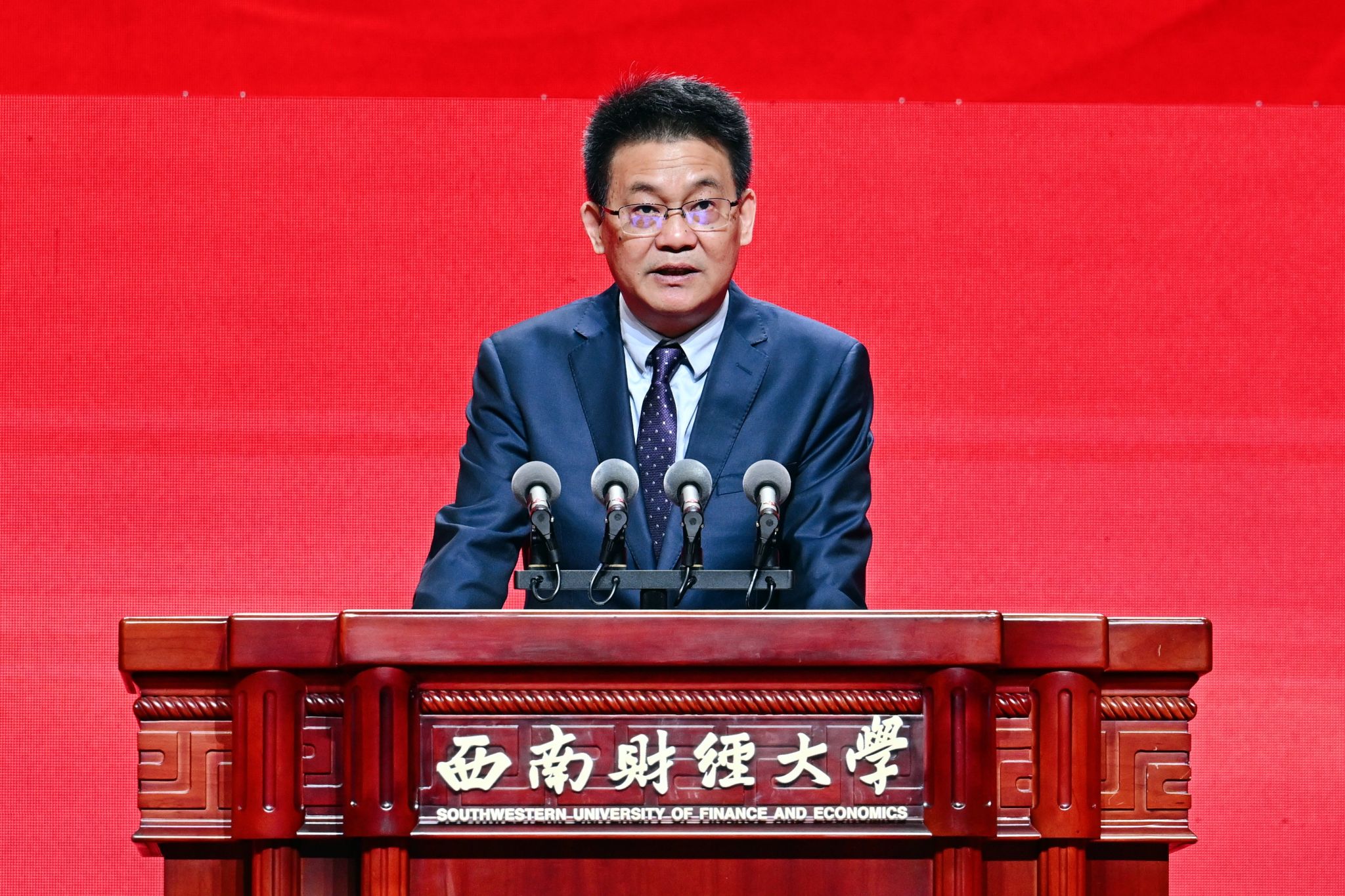 中国人民银行金融研究所所长丁志杰代表中国人民银行祝贺西南财经大学建校100周年。他指出,西南财经大学自诞生之日起,就与国家经济发展紧密相连,一代代西财人以卓越的智慧和担当,深度参与中国金融体系改革、货币金融管理、金融市场建设,为新中国金融事业从奠基到腾飞作出了重要贡献。他表示,中国人民银行对西财的关注从未停止,西财对中国人民银行的支持从未中断。推动金融高质量发展、做好“五篇大文章”是金融行业的重要任务,也是财经高校的时代担当。作为曾受人民银行主管、有着深厚金融底蕴的高校,希望西南财经大学一以贯之“育栋梁”,培养更多堪当时代重任的优秀财经人才;一往无前“攀高峰”,着力打造中国特色金融学科体系、学术体系和话语体系;一心同功“担使命”,为健全金融市场、完善金融监管、传承金融文化、服务实体经济贡献更多“西财智慧”。