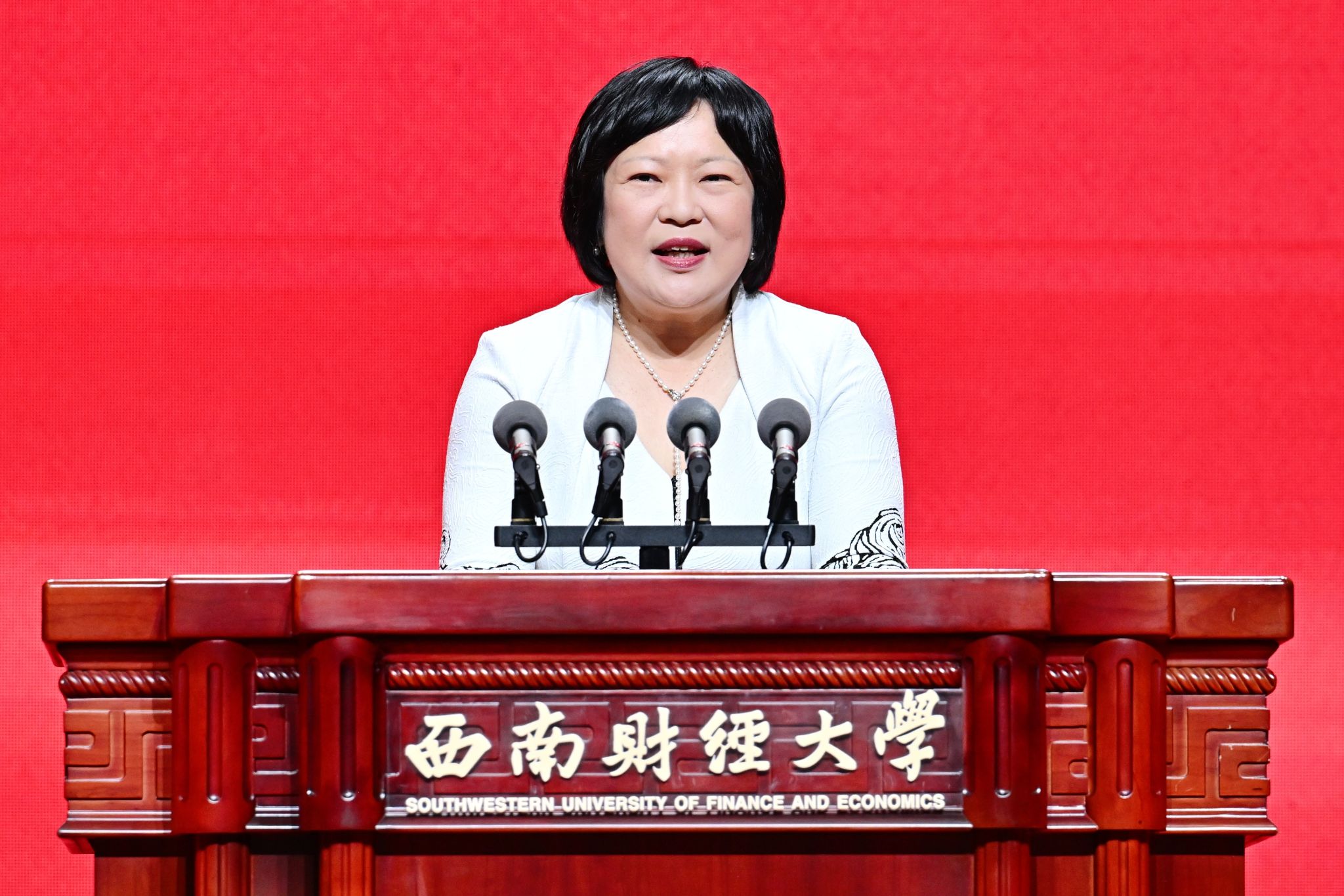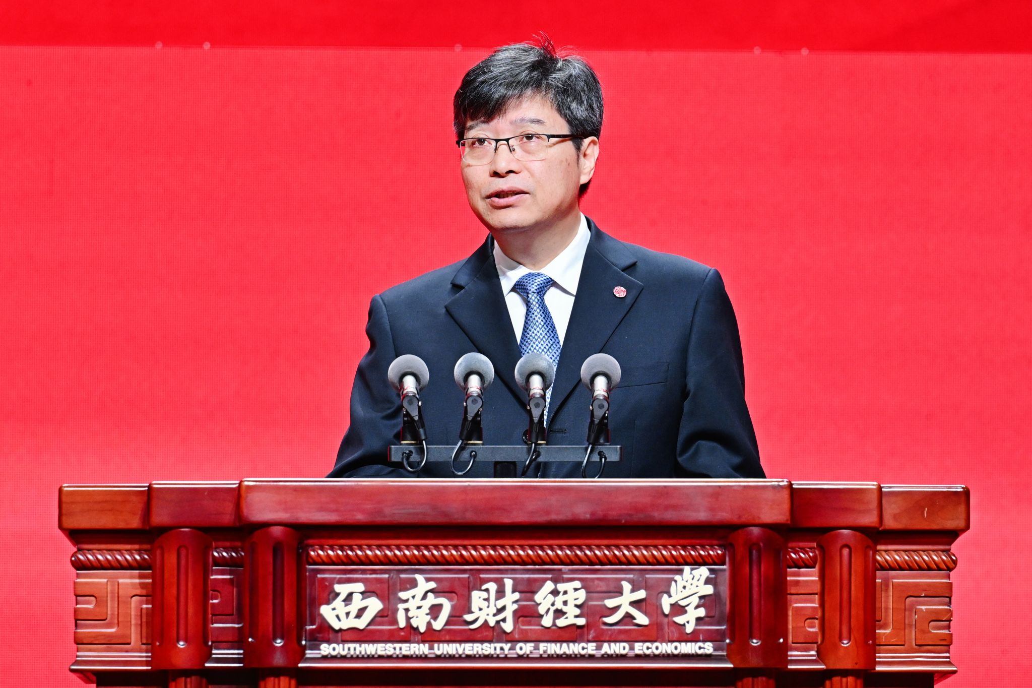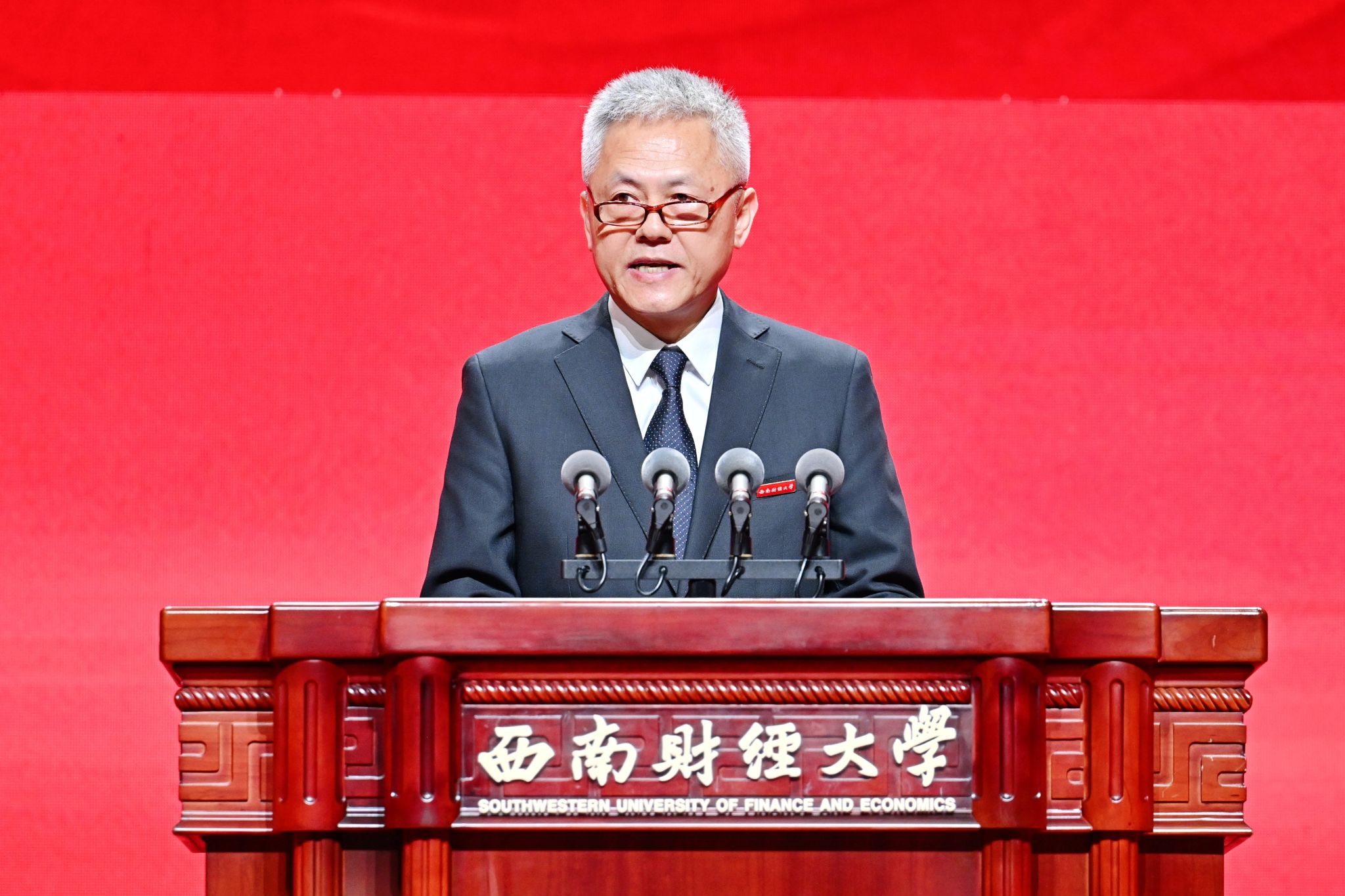 学校党委书记赵建军在主持时表示,西南财经大学一百年的办学历史,是一部格致诚正、兴学报国的奋斗史,是一部经世济民、孜孜以求的奋斗史,更是一部为党育人、为国育才的奋斗史。这部奋斗史,彰显了全体西财人“抢抓机遇、团结奋斗”的可贵品格,体现了西南财大“改革开放、创新发展”的无畏勇气,镌刻着西南财大“追求一流、成就卓著”的隽永篇章。新时代新征程,推进国家治理体系和治理能力现代化,财经高校大有可为。全体西财人将更加紧密地团结在以习近平同志为核心的党中央周围,始终坚持立德树人根本任务,立足中国式现代化伟大实践,坚持自信自立、坚持守正创新,以科技发展、国家战略需求为牵引,做强优势学科,强化人才培养和科学研究,推动加快构建中国特色哲学社会科学自主知识体系,为谱写新时代西部大开发新篇章、加快建设教育强国、金融强国作出新的更大贡献。