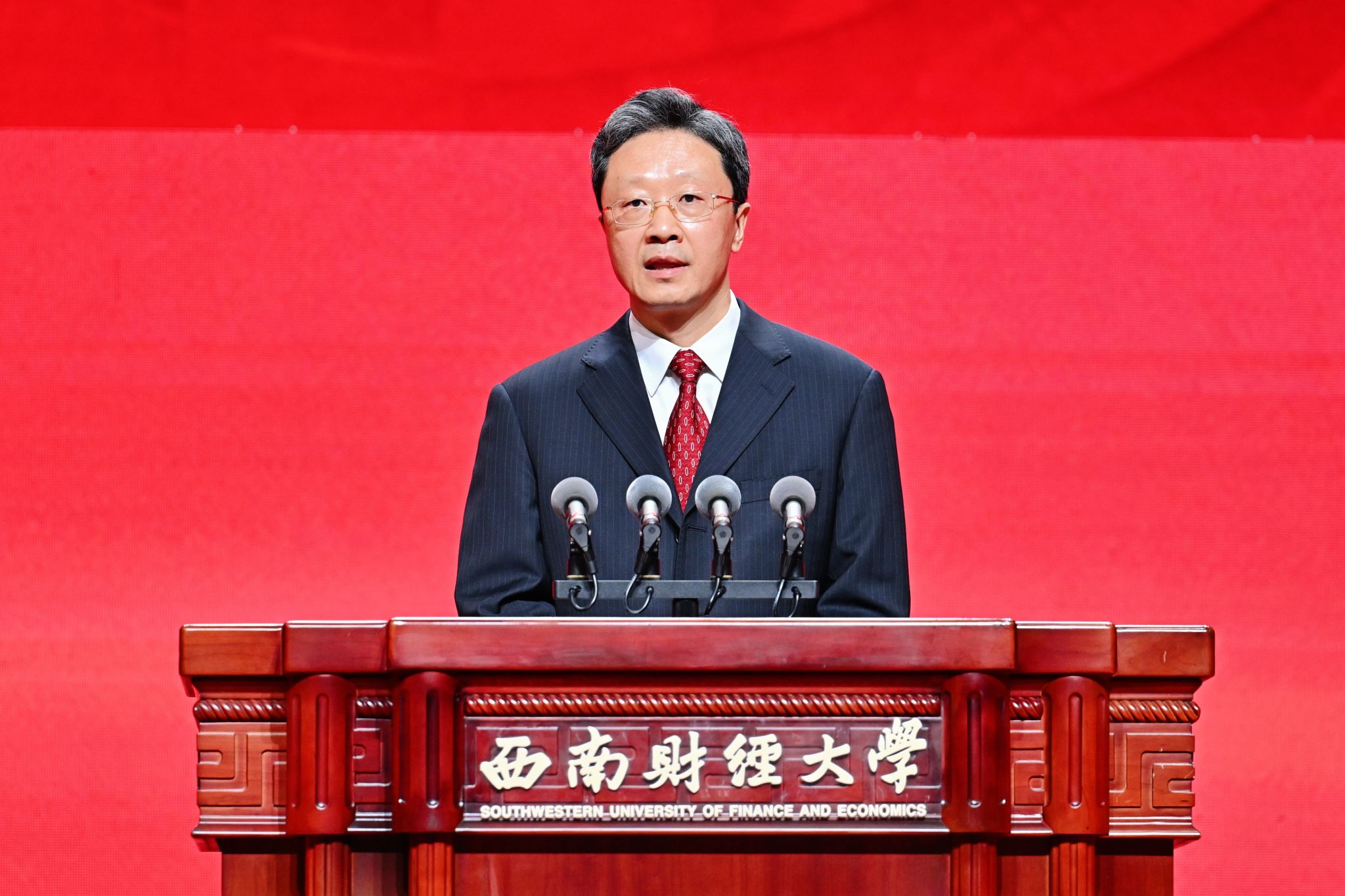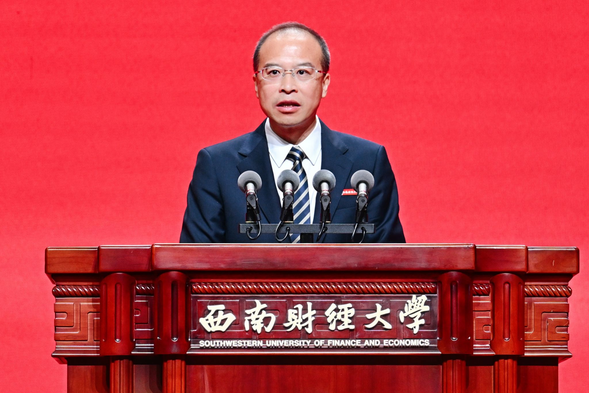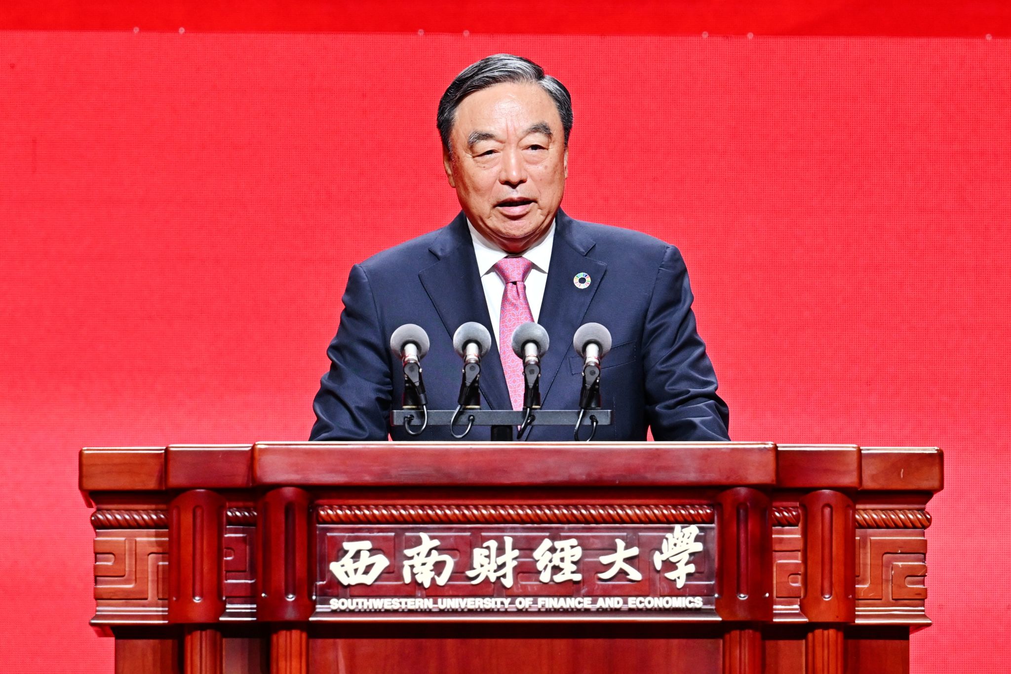 四川省人民政府副省长左永祥代表省政府向学校全体师生员工和海内外校友致以热烈祝贺和诚挚问候。他指出,西南财经大学作为我国高等财经教育名校重镇和国家金融人才培养重要基地,为国家重大战略决策和经济社会发展提供了强有力智力支持,在服务国家西部大开发和成渝地区双城经济圈建设、推动四川经济社会高质量发展等方面作出了重要贡献。他表示,新时代对高等教育特别是高水平财经教育提出了新的更高要求,也为西南财经大学发展提供了前所未有的广阔舞台。希望全体教师潜心治学、精心育人,做学生为学、为事、为人的大先生;希望全体同学珍惜韶华、志存高远,努力成为可堪大用、能担重任的栋梁之材;希望广大校友继续情寄母校、心系桑梓,为母校发展、社会建设添砖加瓦;希望学校百尺竿头更上层楼,在服务国家富强、民族复兴、四川发展中实现更大价值,在新的百年征程中再创辉煌。