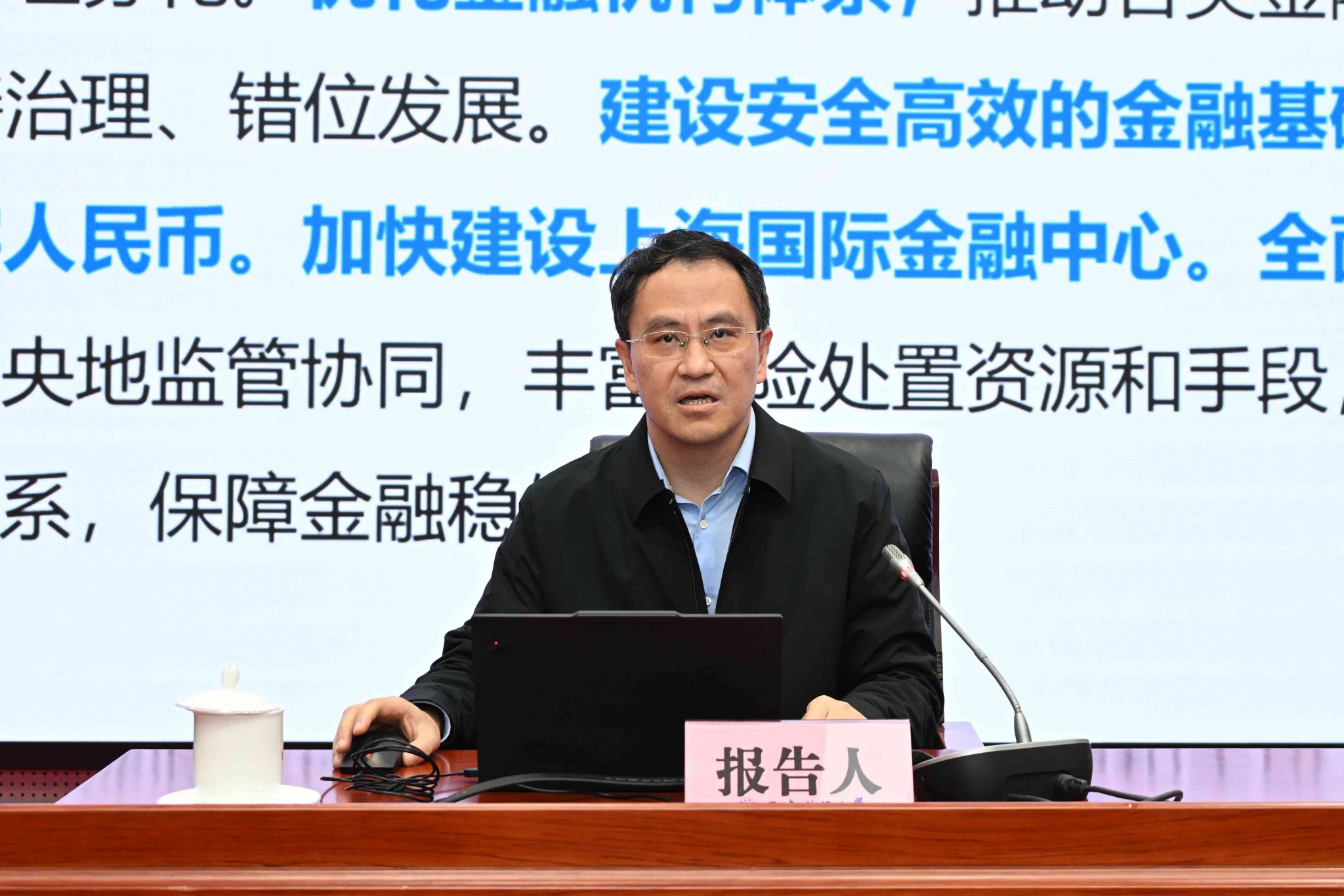 党委常委、副校长王擎教授以《锚定金融强国建设,推动学科高质量发展》为题作首场辅导报告。