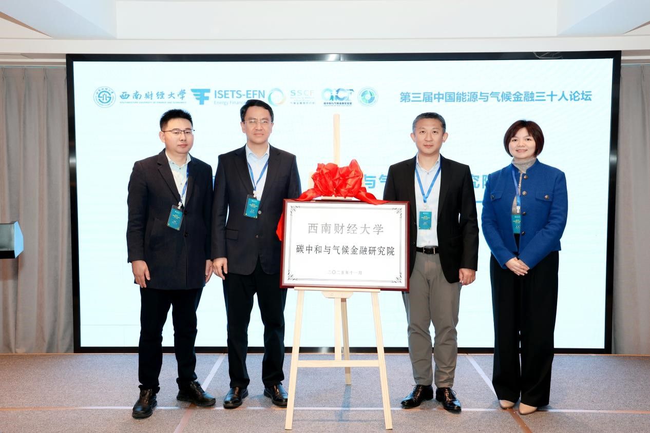 11月15日,西南财经大学碳中和与气候金融研究院正式揭牌成立,这是学校落实国家“双碳”目标、强化学科交叉融合、服务绿色发展的又一重大举措,标志着学校在气候金融领域的研究迈入新阶段。党委常委、副校长王擎出席揭牌仪式并致辞。