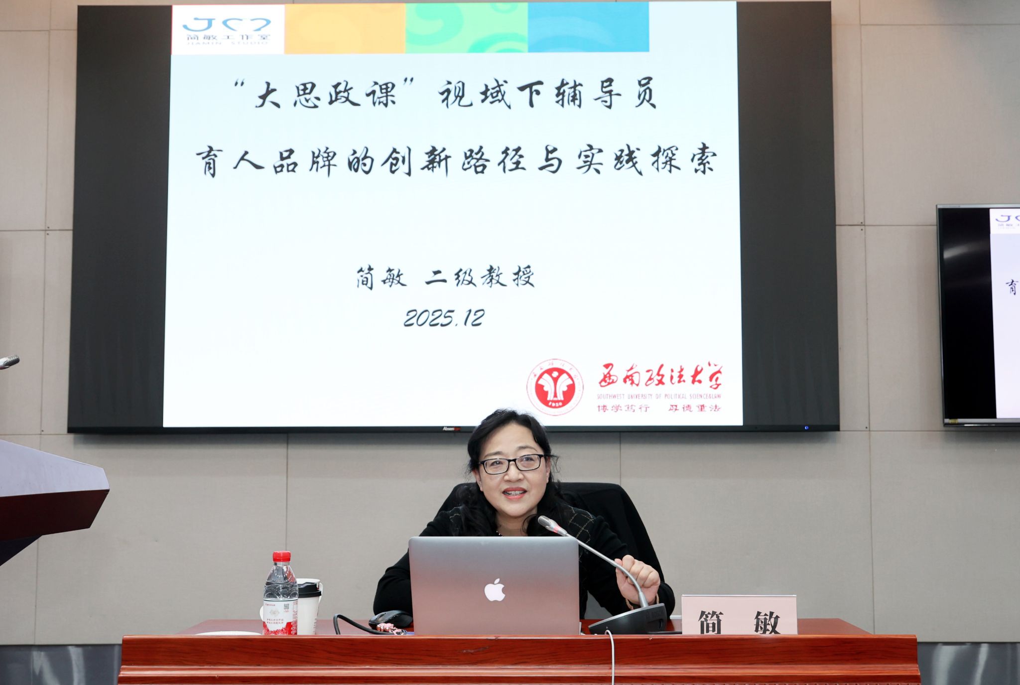 12月3日,学校特邀“全国优秀教育工作者”“全国最美高校辅导员”“第九届全国高校辅导员年度人物”、西南政法大学二级教授简敏来校开展“大思政课背景下辅导员如何打造育人品牌”专题讲座。学生工作部负责人、院级党组织副书记及全体专兼职辅导员参加讲座。