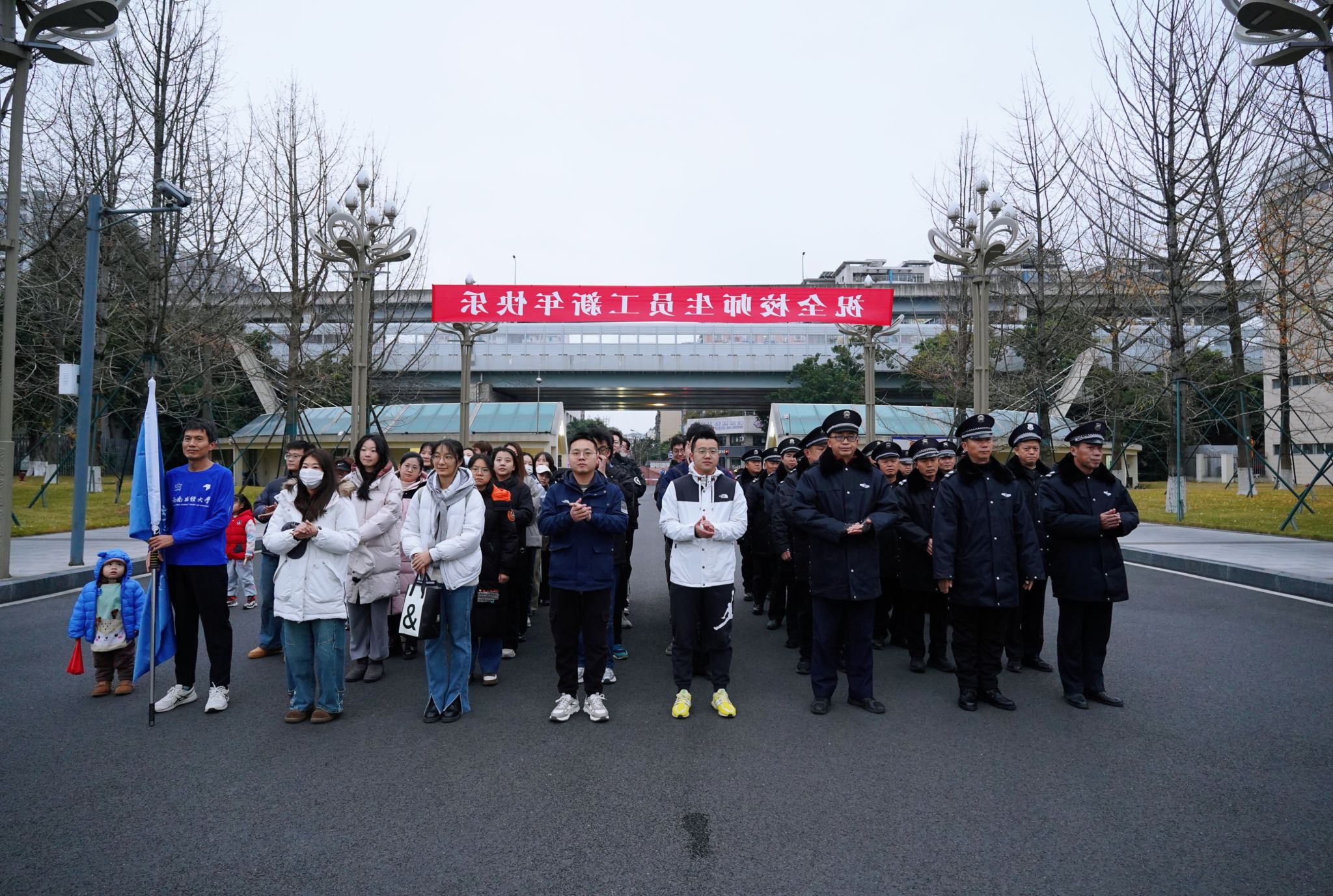 新元肇启,华章日新。2026年1月1日清晨,西南财经大学元旦升国旗仪式在柳林校区与光华校区同时举行。百余名师生员工齐聚国旗下,共同回顾足音铿锵的一年,精神昂扬地开启新年新气象。学校党委副书记、纪委书记孙殿明,党委常委、副校长盖凯程,两校区师生代表、校卫队员参加。相关职能部门负责人主持。