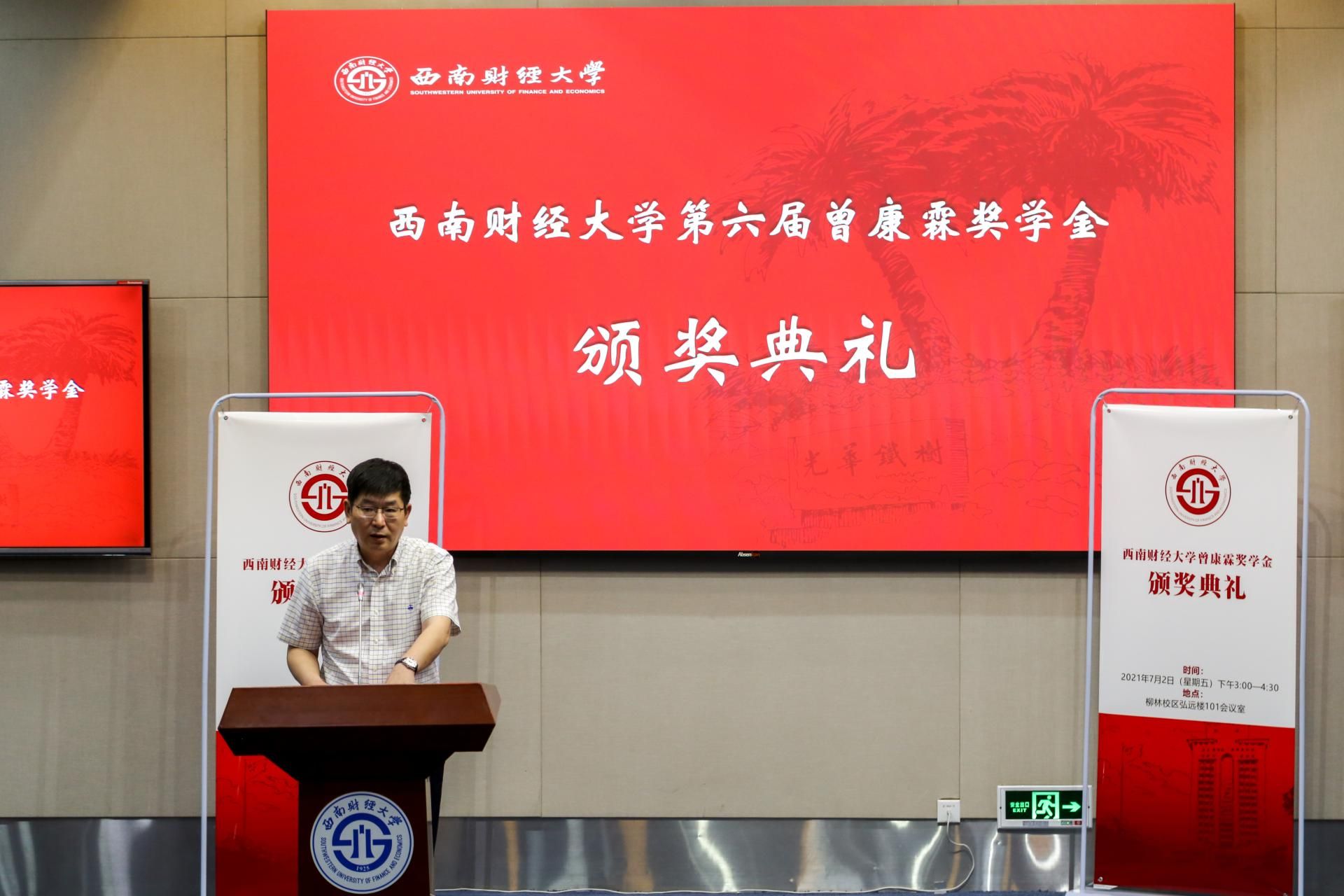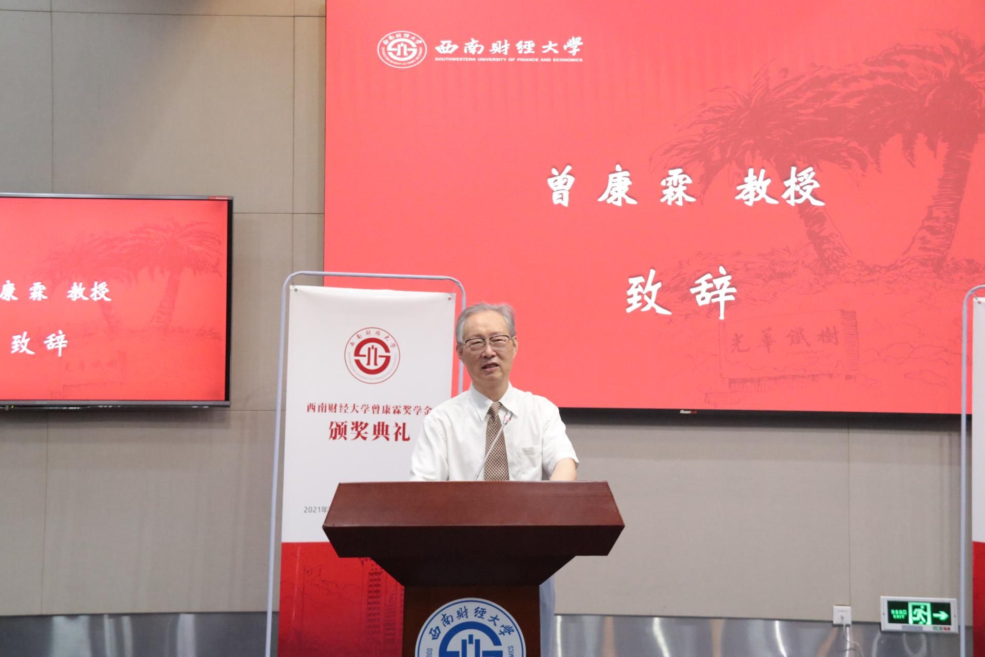 获奖学生代表、金融学院博士生王家隆发言,对曾康霖教授及学校表达衷心感谢。他表示自己将深入学习贯彻习近平总书记“七一”重要讲话精神,努力传承曾康霖教授心怀天下、勇于探索、严谨务实的大师精神,戒骄戒躁,不负时代使命,在金融学研究的道路上奋勇前行。