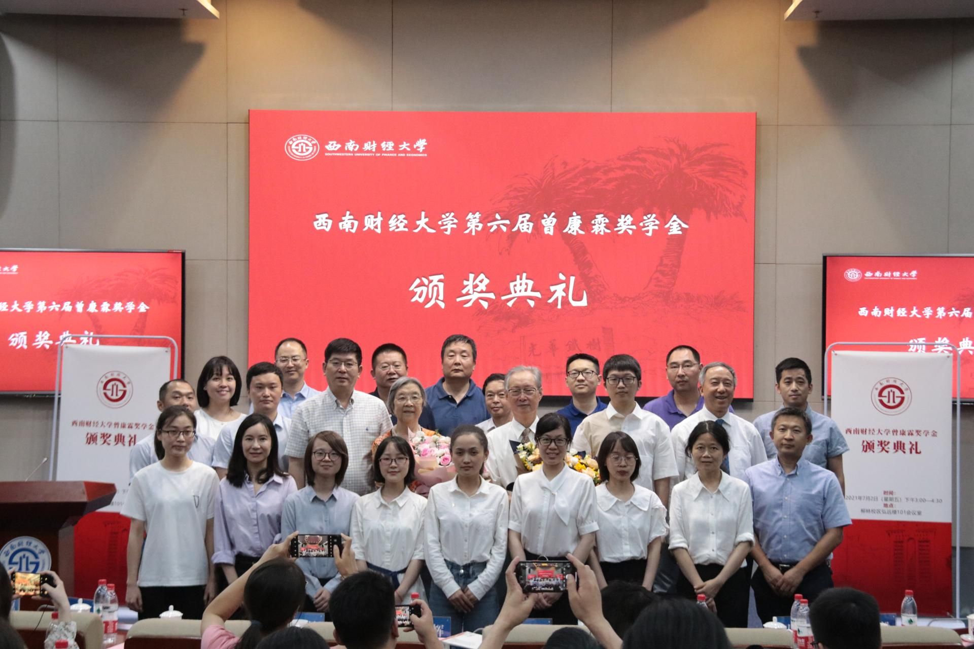 7月2日下午,西南财经大学第六届曾康霖奖学金颁奖典礼在弘远楼101会议室隆重举行。著名金融学家曾康霖教授及夫人谢应辉,党委副书记、校长卓志,党委常委、副校长尹庆双,各学院(中心)负责人、获奖学生和导师代表参加典礼。尹庆双主持典礼。