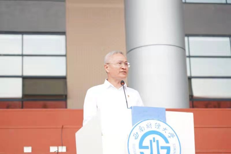 7月14日上午,西南财经大学2020级本科生军训动员大会在晨曦运动场举行。学校党委副书记、军训领导小组组长曾道荣,军训团团长肖文清中校、2020级本科生军训办公室成员单位负责人、全体教官和指导员出席大会。学校武装部副部长、军训领导小组副组长郝文杰主持动员大会。