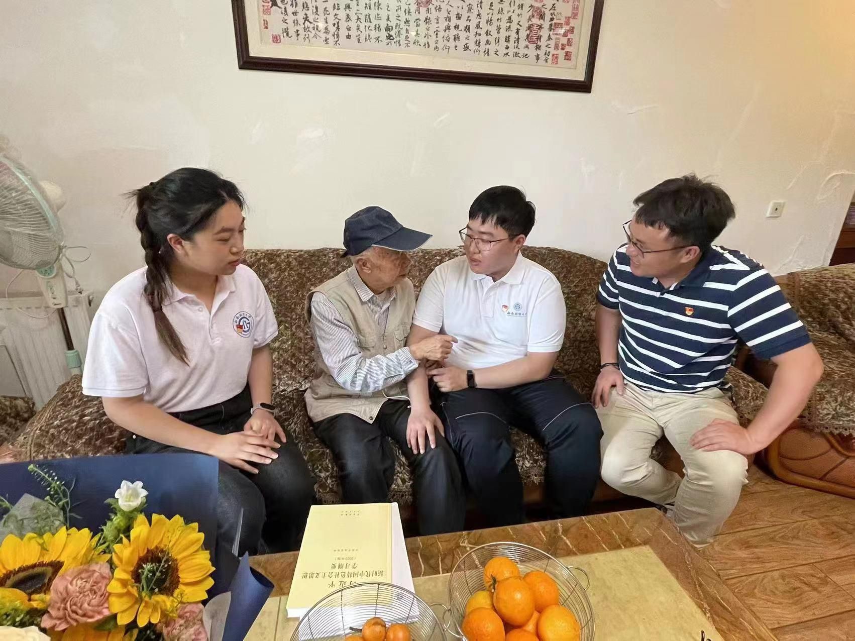 5月29日,离退休党委领导班子成员、学生党建指导中心指导老师以及学生党员志愿者分成两个小组,分别前往我校退休党员汪叔九和曾启宣家中,与老党员进行“送学结对”。老党员们表示,自己很想到学校参加集体活动,但实际情况是年龄太大,身体行动更是不便,很感谢离退休党委和同学们能够把学习资料送到家里,让我们真真切切感受到自己是组织的一员,一定初心不改、跟进学习。老党员曾启宣拉着学生党员的手,亲切说到,“时代的接力棒传递到你们手中了,你们是西财学子优秀的代表,一定要更加努力,也要把身体锻炼好。”