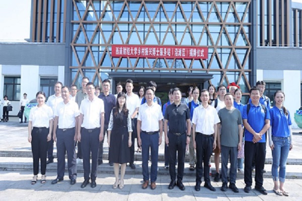 为深入学习贯彻习近平新时代中国特色社会主义思想和党的二十大精神,扎实推进主题教育,更好服务乡村振兴国家战略,8月15日,西南财经大学“乡村振兴博士服务站”在沿滩区乡村振兴综合服务中心揭牌,标志着学校乡村振兴博士服务站服务丘陵地区乡村振兴工作正式启程。自贡市沿滩区区领导覃建波、李雅琴、杨文及相关部门负责人,西南财经大学国内合作与发展处处长赵海程、中国西部经济研究院党委书记杨奇才及部分师生参加揭牌仪式。