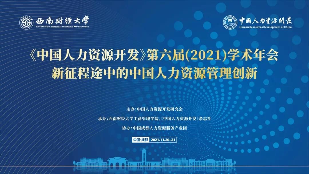 11月20-21日,由中国人力资源开发研究会主办、西南财经大学工商管理学院和《中国人力资源开发》杂志社联合承办、中国成都人力资源服务产业园协办的《中国人力资源开发》第六届(2021)学术年会成功举办。本次学术年会以“新征程途中的中国人力资源管理创新”为主题,来自国内外百余所高校的400余位人力资源学界和业界人士齐聚云端,围绕新时代人力资源管理方面的重大理论和现实问题展开全方位、多视角、深层次的研讨。
