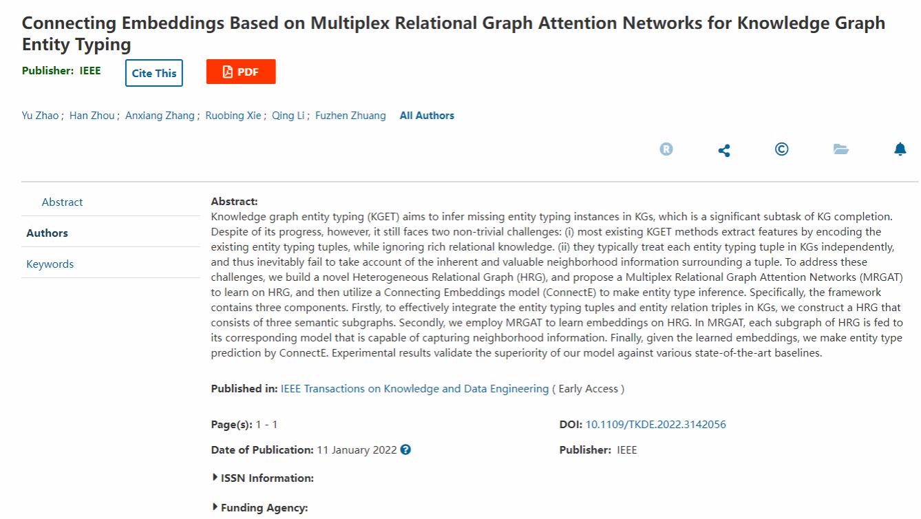 计算机与人工智能学院教师在国际顶刊TKDE发表论文