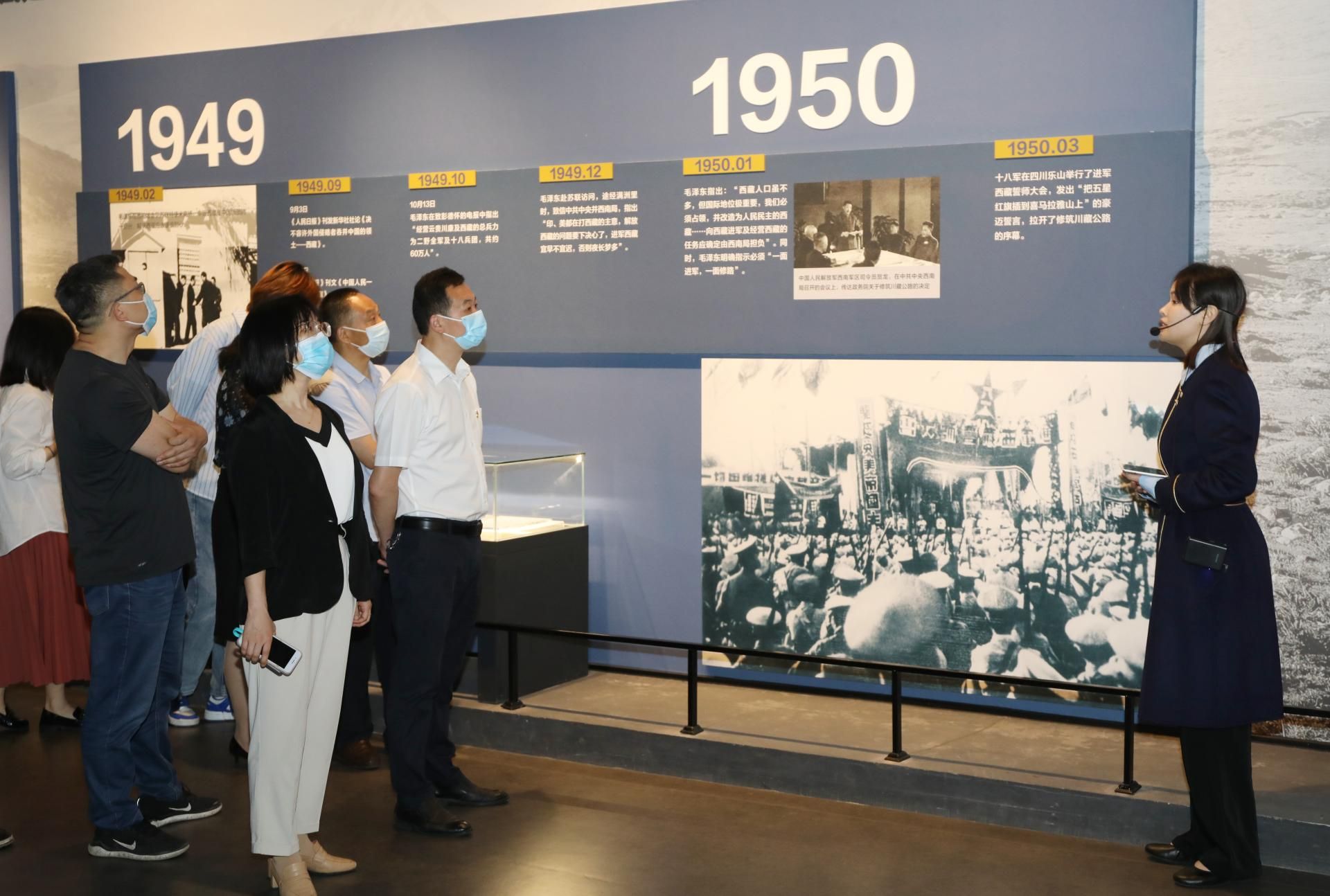 七十多年前,十多万筑路大军以“让高山低头,叫河水让路”的英雄气概,用铁锤、钢钎、铁锹,逢山开路,遇水架桥,从雅安出发,翻越二郎山、折多山、雀儿山等高山峡谷,跨越大渡河、金沙江等激流险滩,穿越雪山、森林、草原、冰川等复杂地貌,历时四年多,最终到达拉萨,在“世界屋脊”创造了公路建设史上的奇迹,为西藏的和平解放和社会经济发展作出了重大贡献。在川藏公路博物馆,一幅幅珍贵的照片,一件件筑路工具、生活用品、徽章旗帜等物品,大量历史资料和人物访谈等视频资料,全景展示了建设川藏公路的重大历史意义、艰苦卓绝的建设过程,让全体党员深刻领悟了中国共产党为什么能、深刻领悟了习近平总书记提出的“一不怕苦、二不怕死,顽强拼搏、甘当路石,军民一家、民族团结”的“两路”精神。全体党员还参观学习了在交通强国战略指引下四川建设交通强省的最新成就与未来规划,体验了现代城市轨道交通科技成果。