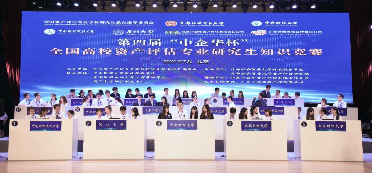 2021年7月9日-10日,第四届“中企华杯”全国高校资产评估专业研究生知识竞赛在首都经济贸易大学举办。由我校财政税务学院2020级资产评估专业研究生周梦、王灵锋、严章瑶、孟新组成的西南财经大学代表队荣获一等奖,指导教师王佳副教授荣获优秀指导教师奖。