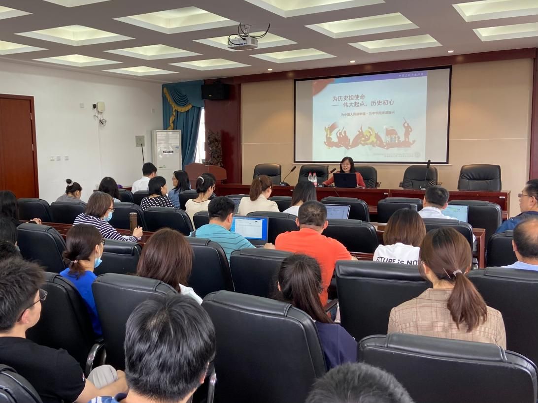 为推进学院党史学习教育走深走实,5月18日下午,学校党史学习教育教师宣讲团成员、马克思主义学院李春梅教授受邀到经济信息工程学院开展题为“为历史担使命——伟大起点,历史初心”的党史学习教育宣讲,学院领导班子成员和师生代表参加宣讲会。