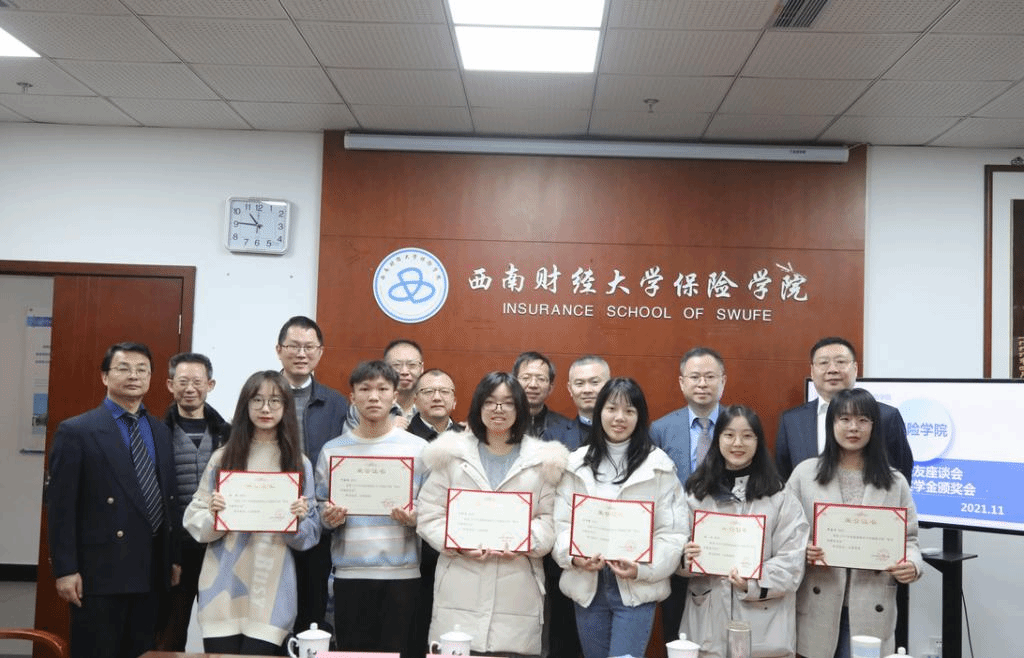 颁奖仪式上,全体校友为本科2019级6位获得校友奖学金获奖同学颁奖。获奖学生代表杨彤向校友、学院、学校表示了感恩之情。她表示,作为新一代保险学子,应当意识到其肩负的时代责任,要学好本领,为学校的荣光,为国家的繁荣富强贡献力量。