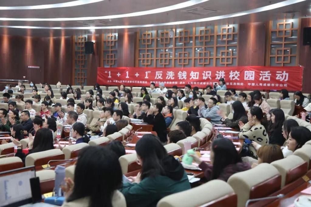10月27日,由我校和中国人民银行成都分行营业管理部、中国人寿成都市分公司联合开展的2020年反洗钱知识进校园活动成功在我校举办。中国人民银行成都分行反洗钱处王敏处长、中国人寿四川分公司风险管理部牟健总经理、人行成都分行营业管理部反洗钱处彭子元处长、中国人寿成都市分公司纪委书记孙晖、我校学生工作部部长谢红、保险学院分党委书记文洪毅等出席了活动。活动由保险学院分党委副书记邓岚主持。