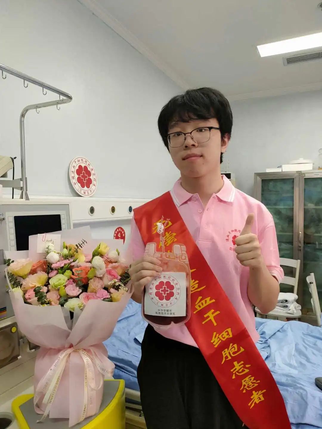 “我很荣幸能作为捐献造血干细胞志愿者在帮助他人的过程中实现人生价值。感谢父母和学校对我的培养与支持,感谢中华骨髓库和学校红十字会的组织,很高兴在志愿者们的共同努力下越来越多的人开始关注造血干细胞移植,希望更多的人能投身到这项光荣的公益事业中!”我校造血干细胞捐献者樊栗成同学在捐献成功后说道。